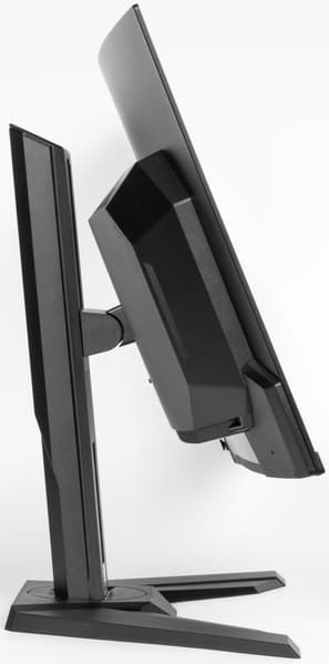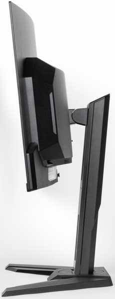 В целом дизайн умеренно игровой, поэтому с точки зрения внешнего вида монитор можно считать универсальным. Панели монитора и кожухи подставки изготовлены из черного пластика в основном с просто матовой поверхностью, но местами есть мелкий рельефный узор и глянцевые участки.