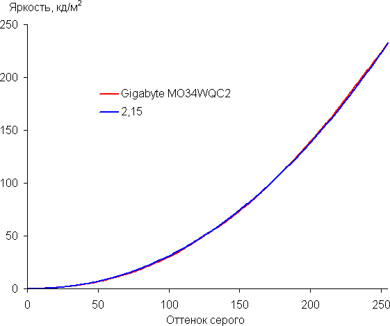 Рост прироста яркости более-менее равномерный, и каждый следующий оттенок значимо ярче предыдущего, даже в самой темной области, что для игрового монитора очень полезно: