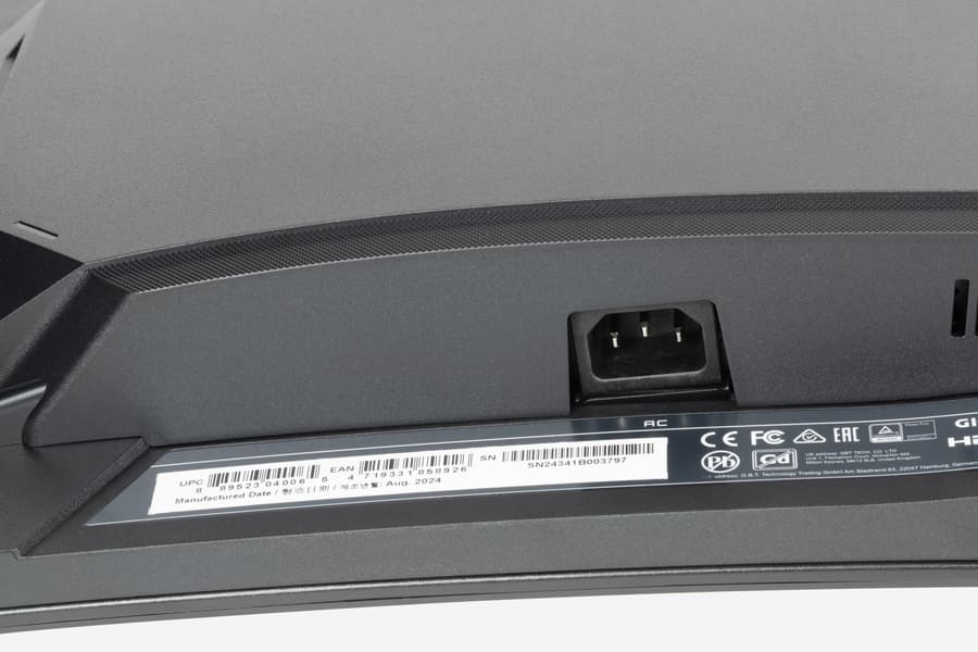 Задняя панель матрицы изготовлена из тонкого листа стали и имеет стойкое черное матовое покрытие. По периметру панель заходит на торцы матрицы и образует окантовку экрана. Выступающий назад кожух изготовлен из пластика. Толщина экрана по краям, где его не прикрывает кожух, составляет всего 4,5 мм. Разъем питания и интерфейсные разъемы расположены на нижнем торце выступа сзади и ориентированы вниз. Кабели, идущие от разъемов монитора, можно пропустить через вырез в нижней части стойки подставки.