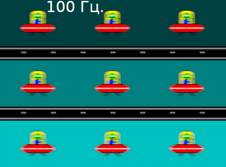 Попробуем представить, что было бы в случае матрицы с мгновенным переключением пикселей. Для нее при 60 Гц объект со скоростью движения 960 пиксель/с размывается на 16 пикселей, при 100 Гц — на 10 пикселей (скорость 1000 пиксель/с), при 240 Гц — на 4 пикселя (скорость 960 пиксель/с). Размывается, так как фокус зрения движется с указанной скоростью, а объект неподвижно выводится на 1/60, 1/100 или 1/240 секунды. Для иллюстрации этого сымитируем размытие на 16, 10 и 4 пикселя: