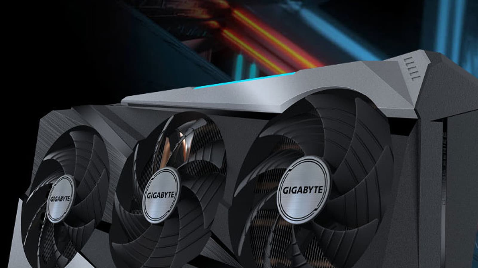 Подсветка у карты представлена лишь на верхнем торце в виде логотипа компании — типично для видеокарт, выпускаемых под брендом Gigabyte.