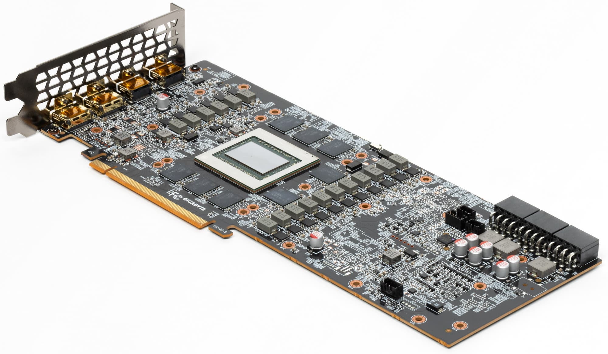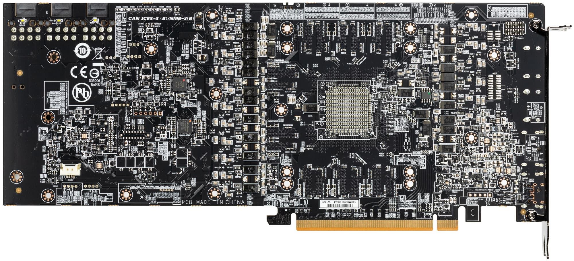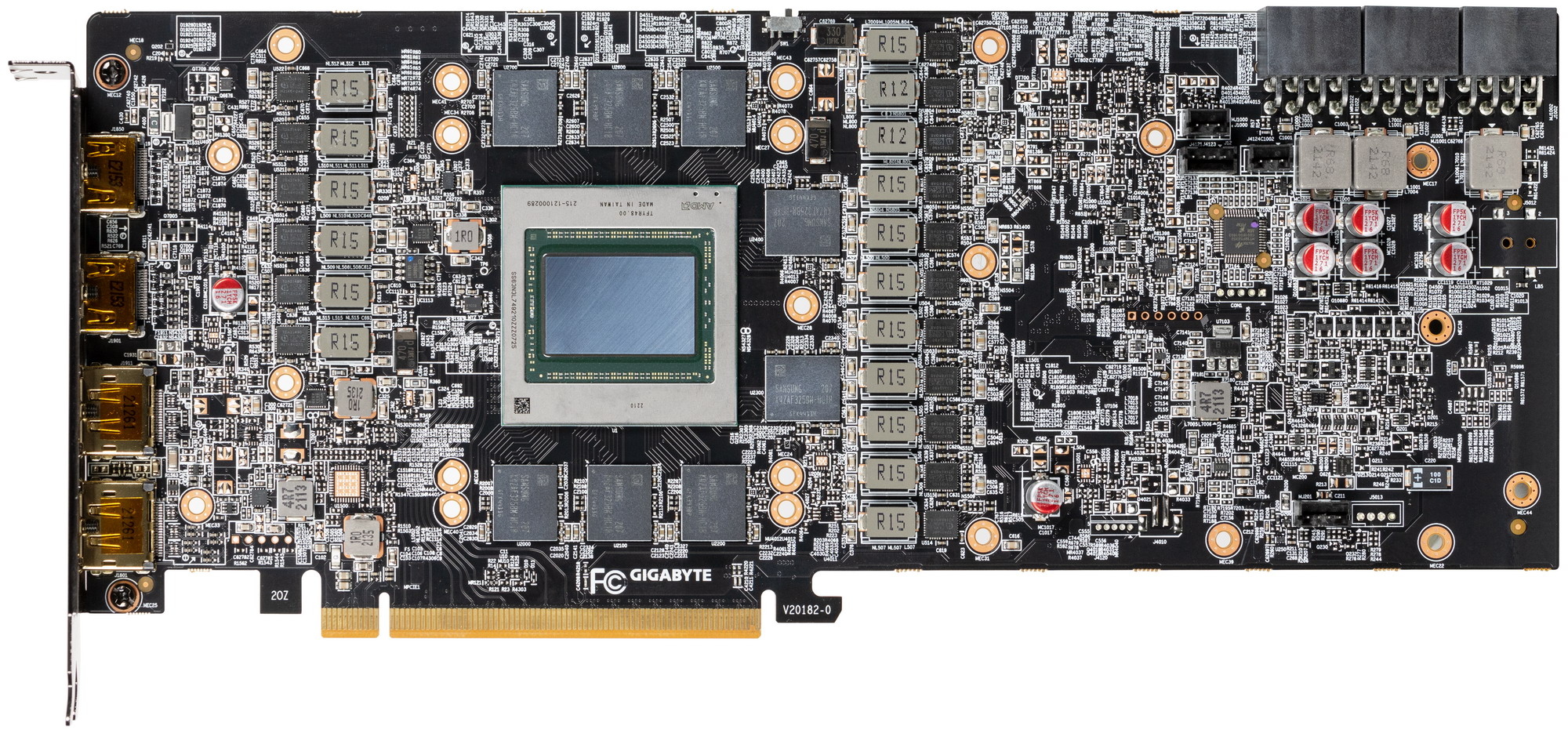Сама печатная плата очень сложная, имеет 14 слоев, включая 4 медных слоя для уменьшения помех и улучшения охлаждения. По видеовыходам – набор 2 HDMI 2.1 + 2 DP 1.4а.