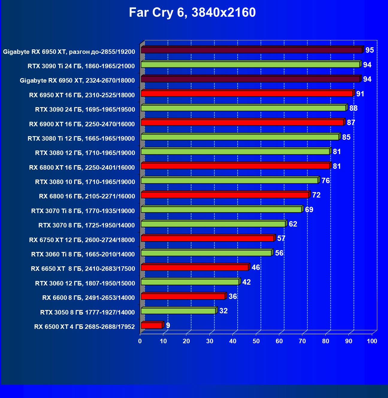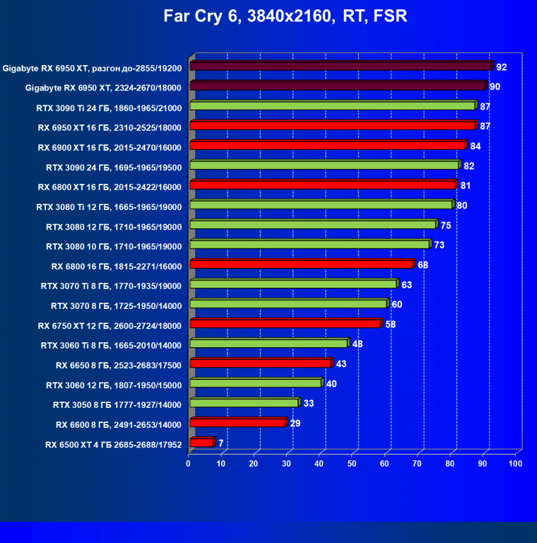 | 17 | Gigabyte RX 6950 XT, 2324-2670/18000 | 93 | 919 | 99 000 |