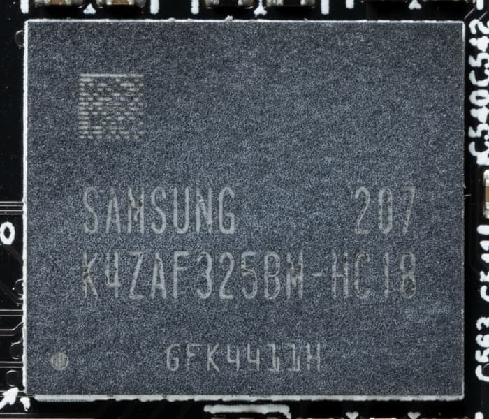 Карта имеет 16 ГБ памяти GDDR6 SDRAM, размещенной в 8 микросхемах по 16 Гбит на лицевой стороне PCB. Микросхемы памяти Samsung (GDDR6, K4Z80325BC-HC18) рассчитаны на условную номинальную частоту работы в 2250 (18000) МГц.