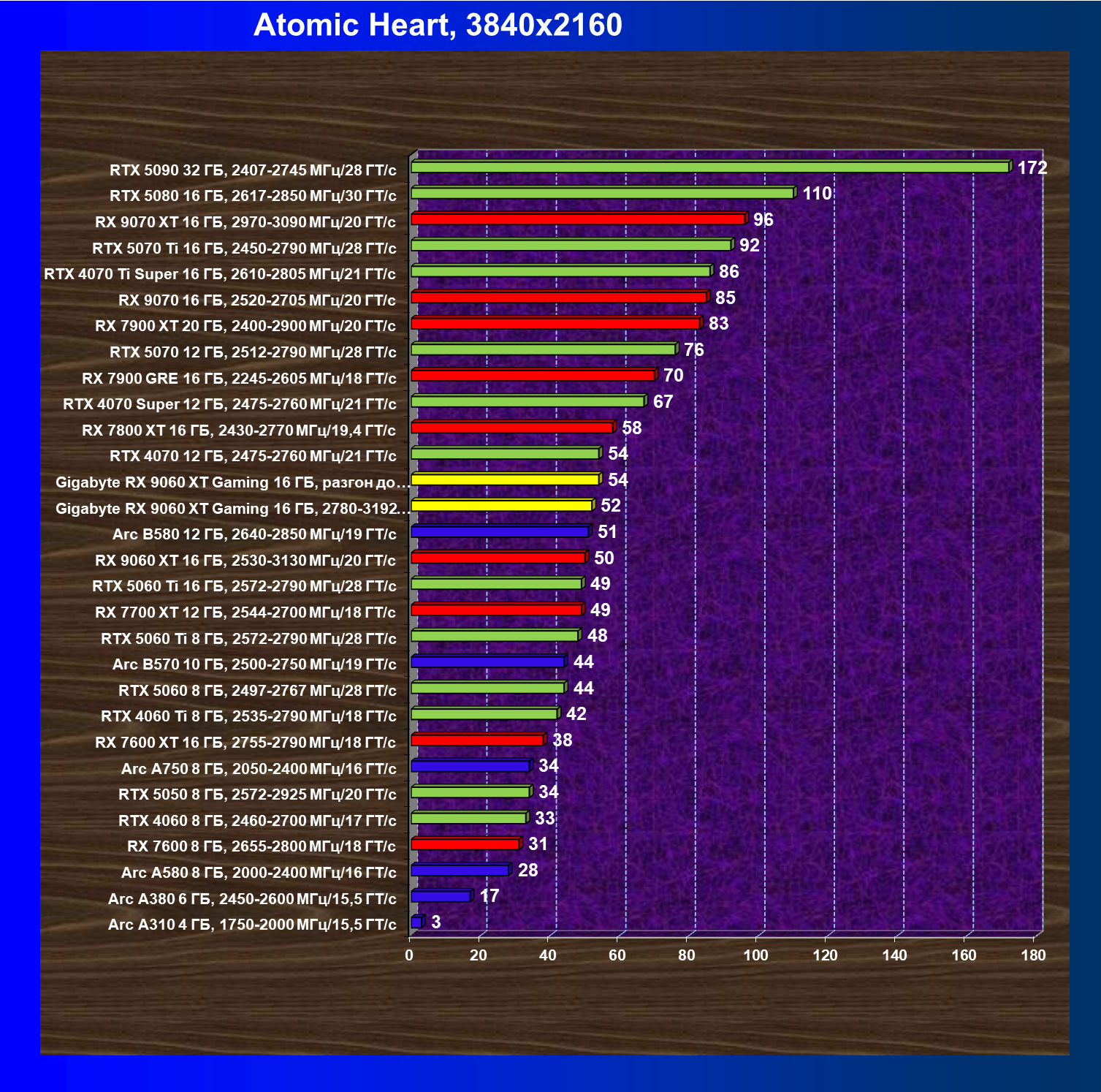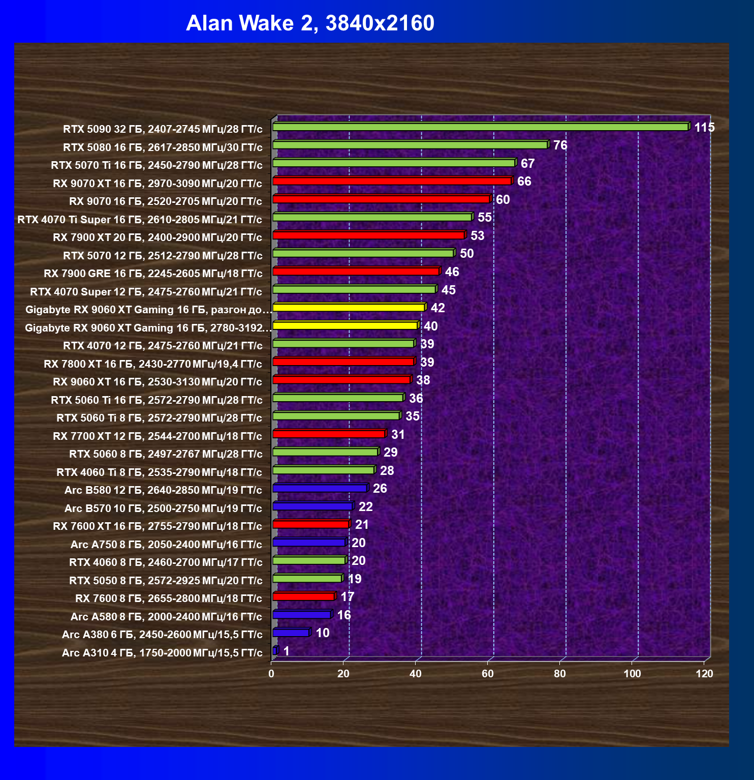 | 21 | Arc B580 12 ГБ, 2640—2850 МГц/19 ГТ/с | 1678 | 541 | 31 000 |