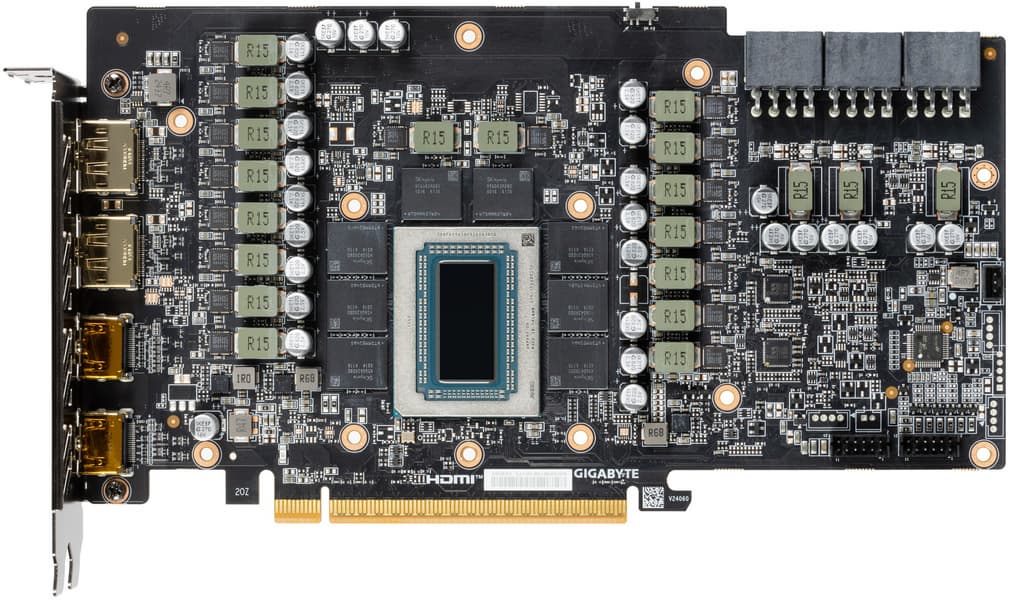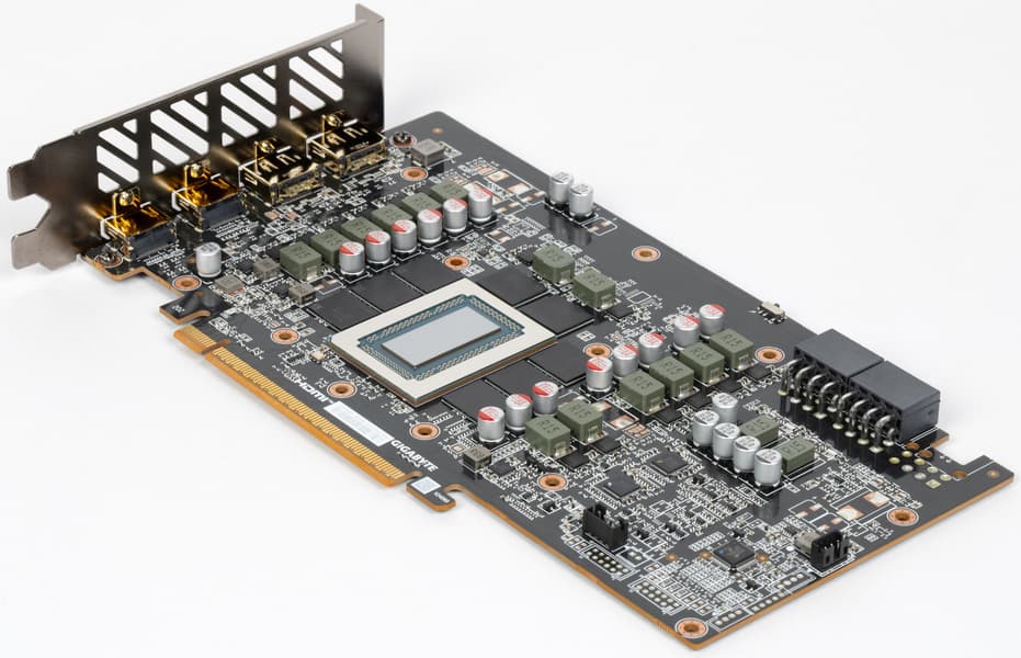 Питание на карту Gigabyte подается через два 8-контактных разъема питания стандарта PCIe 2.0.