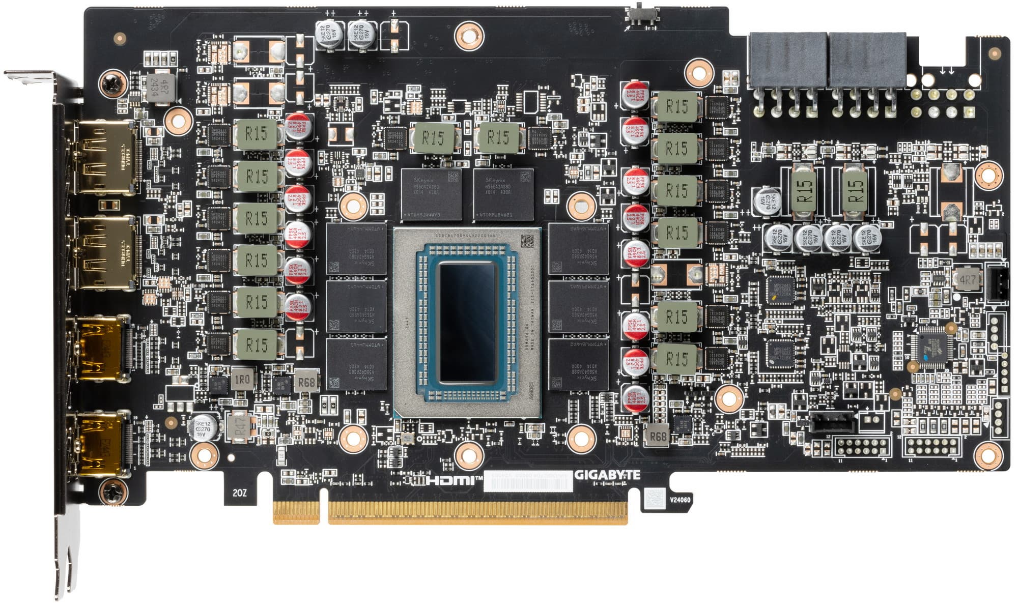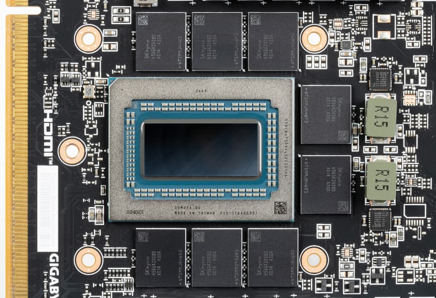 Карта имеет 16 ГБ памяти GDDR6 SDRAM, размещенной в 8 микросхемах по 16 Гбит на лицевой стороне PCB. Микросхемы памяти SK Hynix (H56G42AS8DX014) рассчитаны на номинальную частоту работы в 2500 МГц (эффективная ПСП 20 ГТ/с, или 20 Гбит/с).