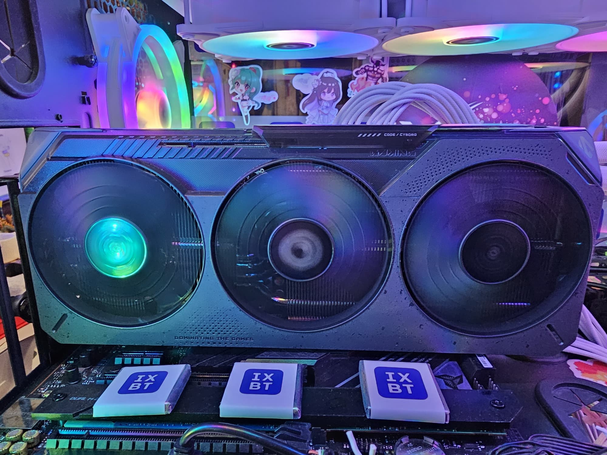 Карта имеет стандартный набор видеовыходов: два DP 2.1a и два HDMI 2.1b.