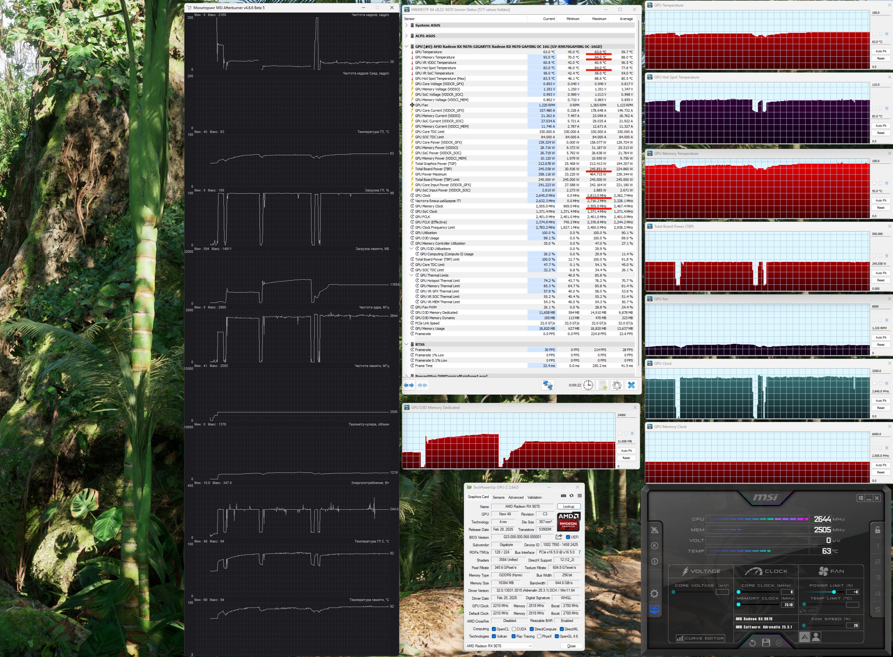 | 08 | Gigabyte RX 9070 Gaming OC, 2700—2785 МГц/20 ГТ/с | 456 | 3737 | 82 000 |