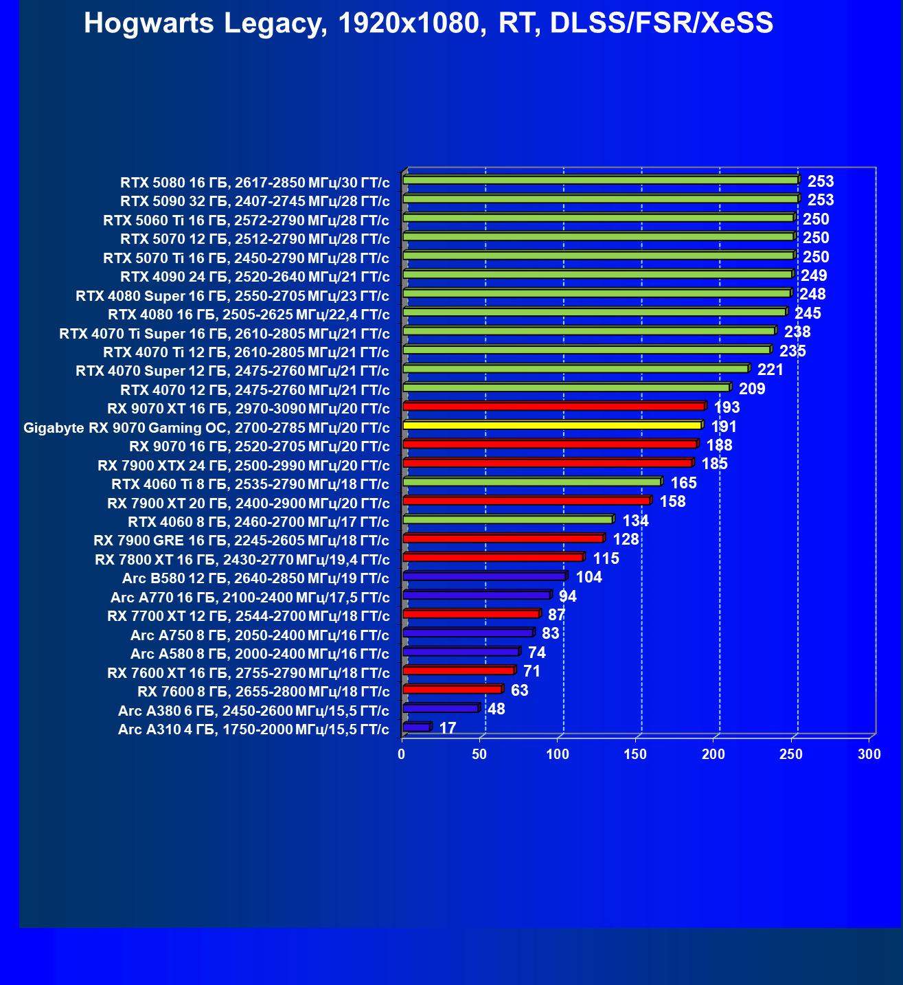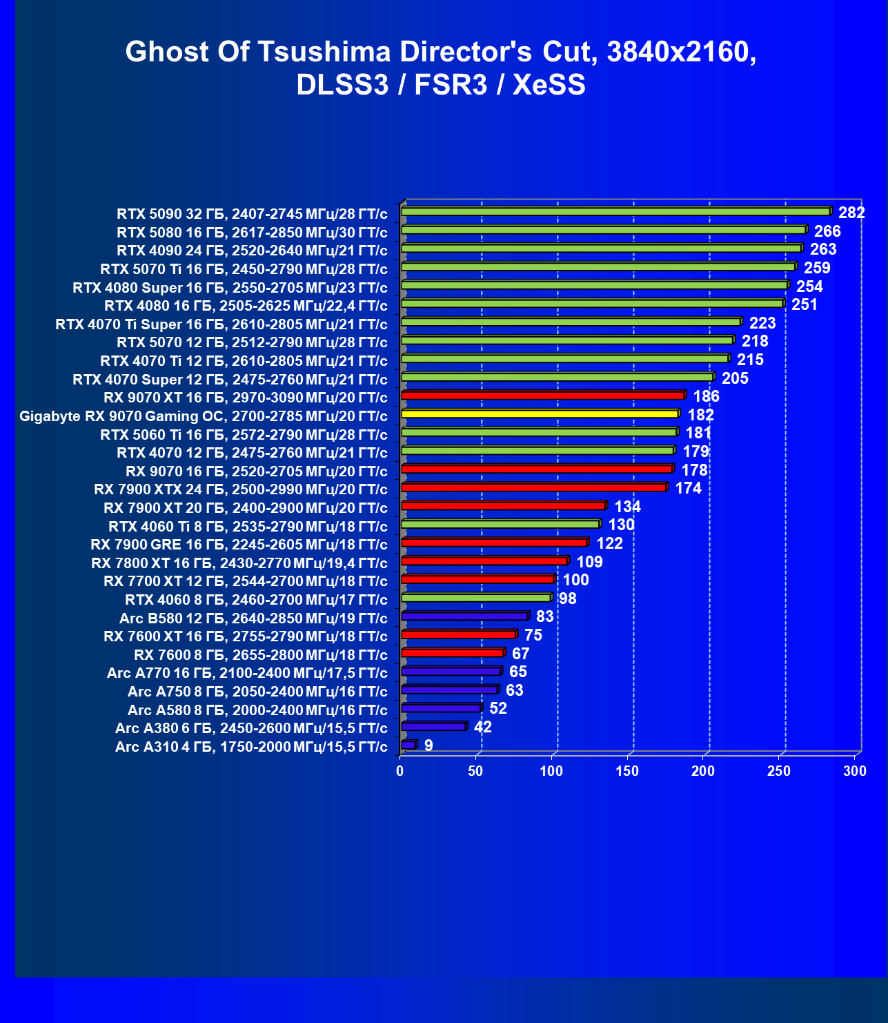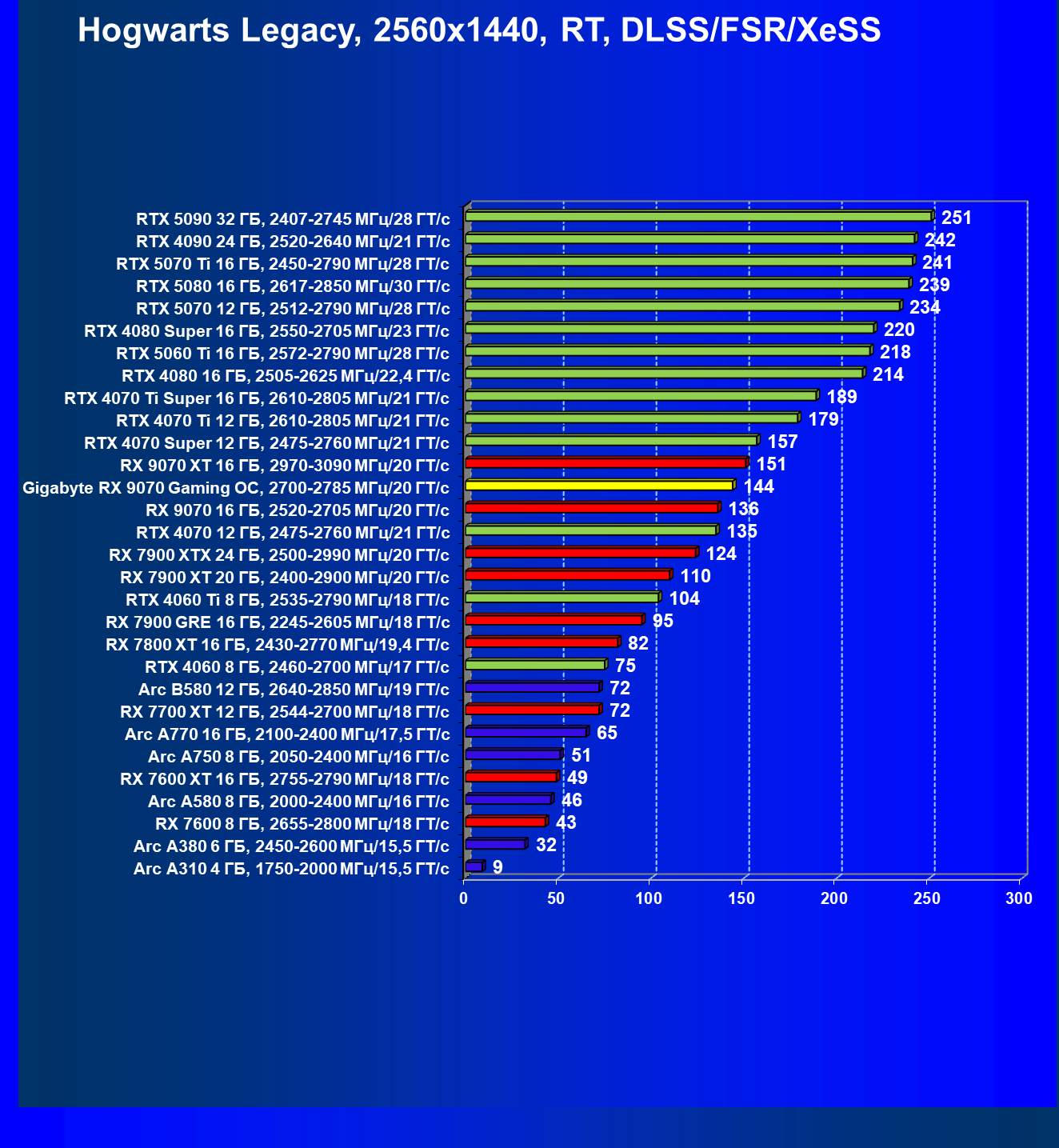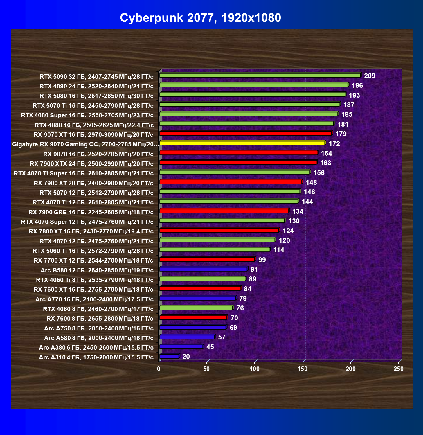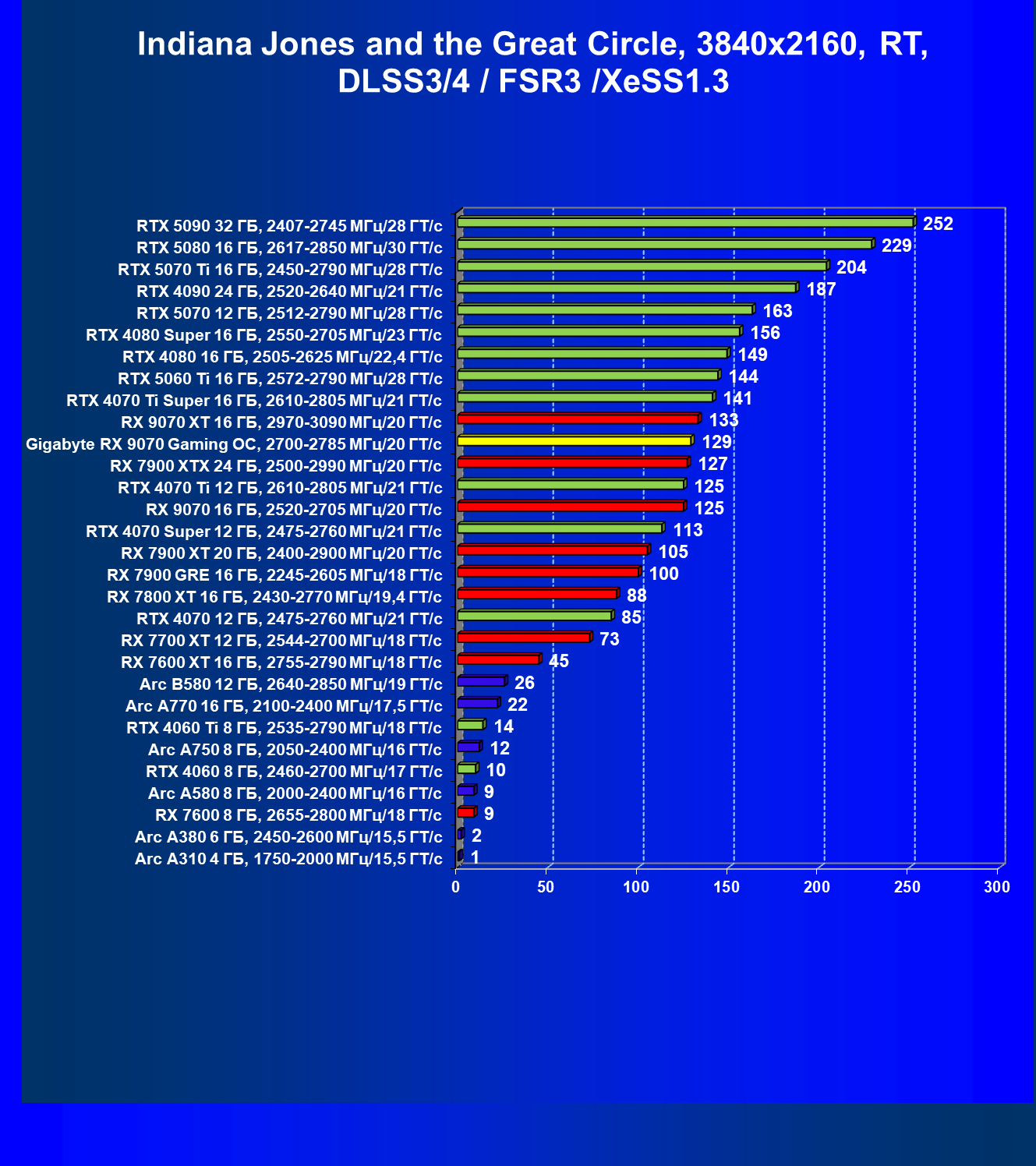 | 09 | RX 9070 16 ГБ, 2520—2705 МГц/20 ГТ/с | 249 | 2045 | 82 000 |