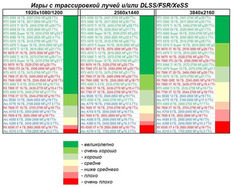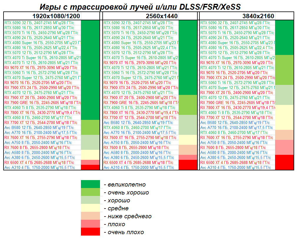 - с RT, без DLSS/FSR/XeSS