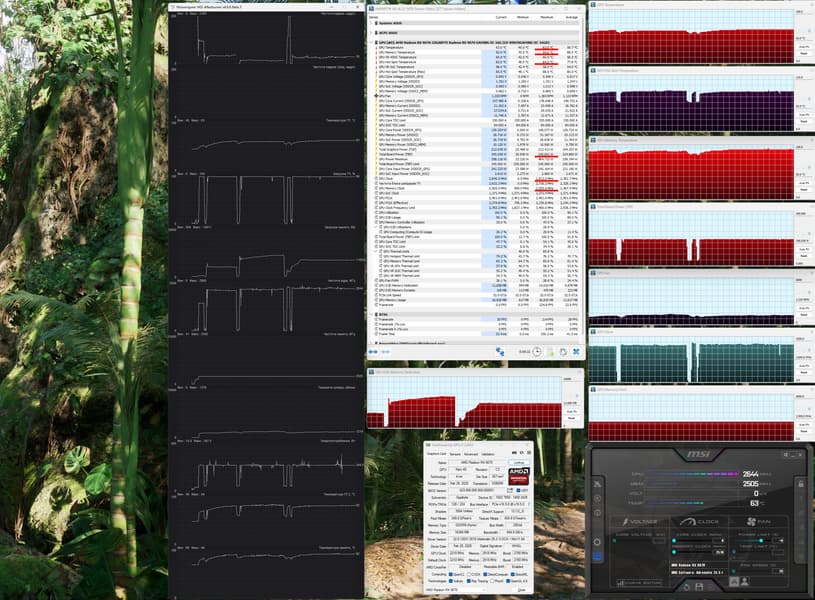 После прогона под нагрузкой максимальная температура ядра не превысила 58 градусов (hot spot — 79 °C), а микросхем памяти — 88 °C, что является великолепным результатом. Энергопотребление карты доходило до 245 Вт.