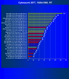 | 08 | RX 7900 XTX 24 ГБ, 2500—2990 МГц/20 ГТ/с | 2219 | 168 | 132 000 |