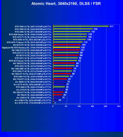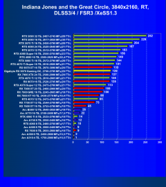 Результаты тестов со включенной аппаратной трассировкой лучей и/или DLSS/FSR/XeSS в разрешениях 1920×1080, 2560×1440 и 3840×2160
