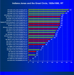 | 25 | RX 7900 XTX 24 ГБ, 2500—2990 МГц/20 ГТ/с | 168 | 2219 | 132 000 |