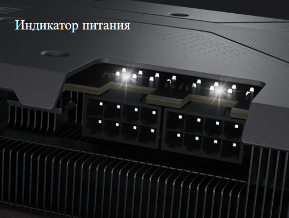 Каждый разъем снабжен индикатором, извещающим о проблемах с подводом питания к видеокарте.