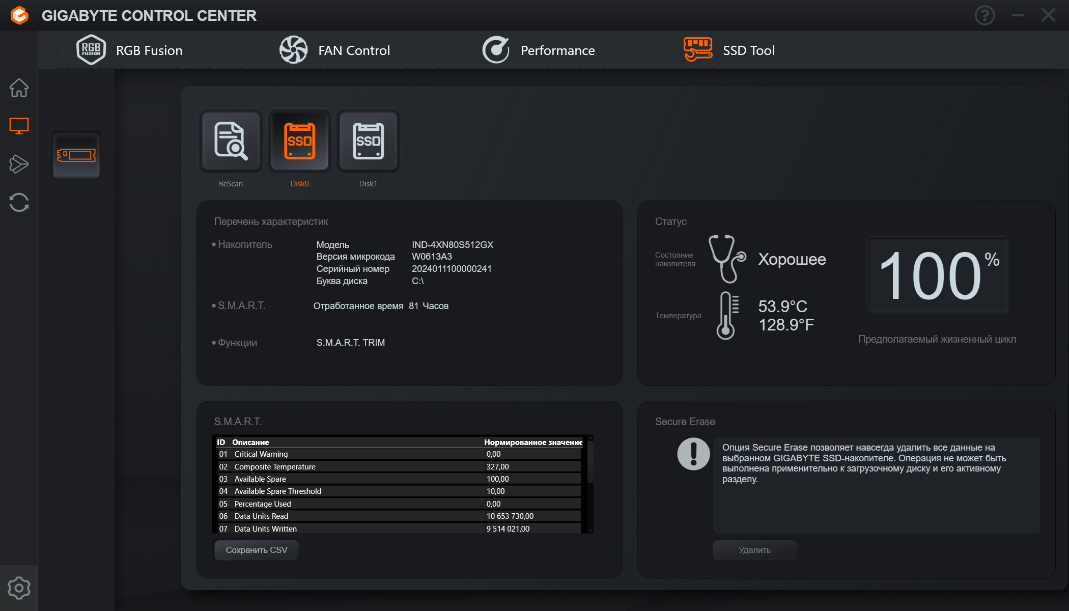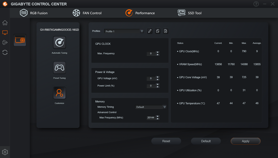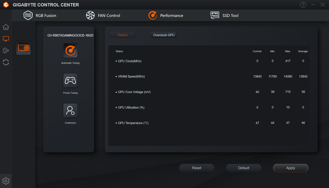 Управление работой карты обеспечивается с помощью фирменной программы Gigabyte Control Center.
