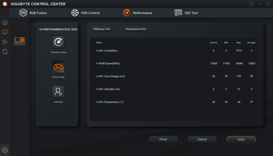 Штатные частоты памяти равны референсным значениям. А Boost-значение частоты работы ядра в обоих режимах BIOS P/BIOS S выше референсного на 3%. При этом максимальная частота GPU у карты Gigabyte выше референсной аж на 8%. Исследования показали, что карта Gigabyte продемонстрировала производительность в играх выше референсной на 6,2% (в среднем в разрешении 2.5K).