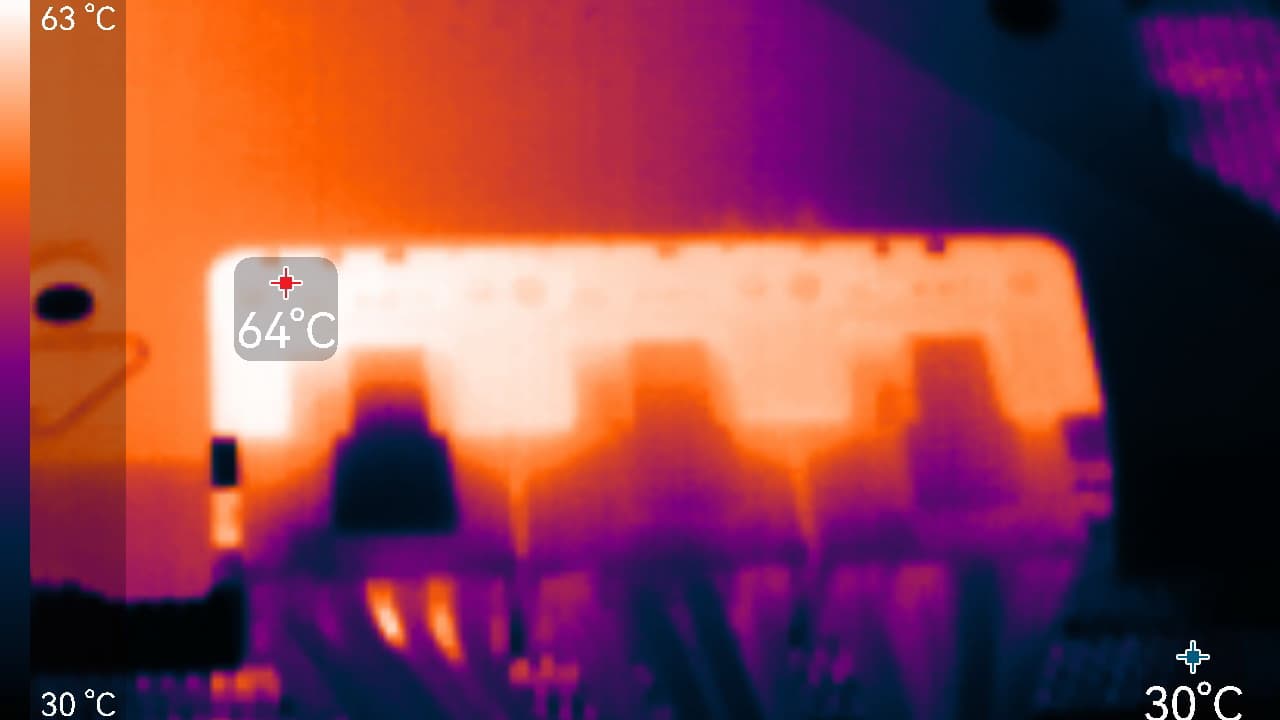Максимальный нагрев наблюдался в центральной части PCB.