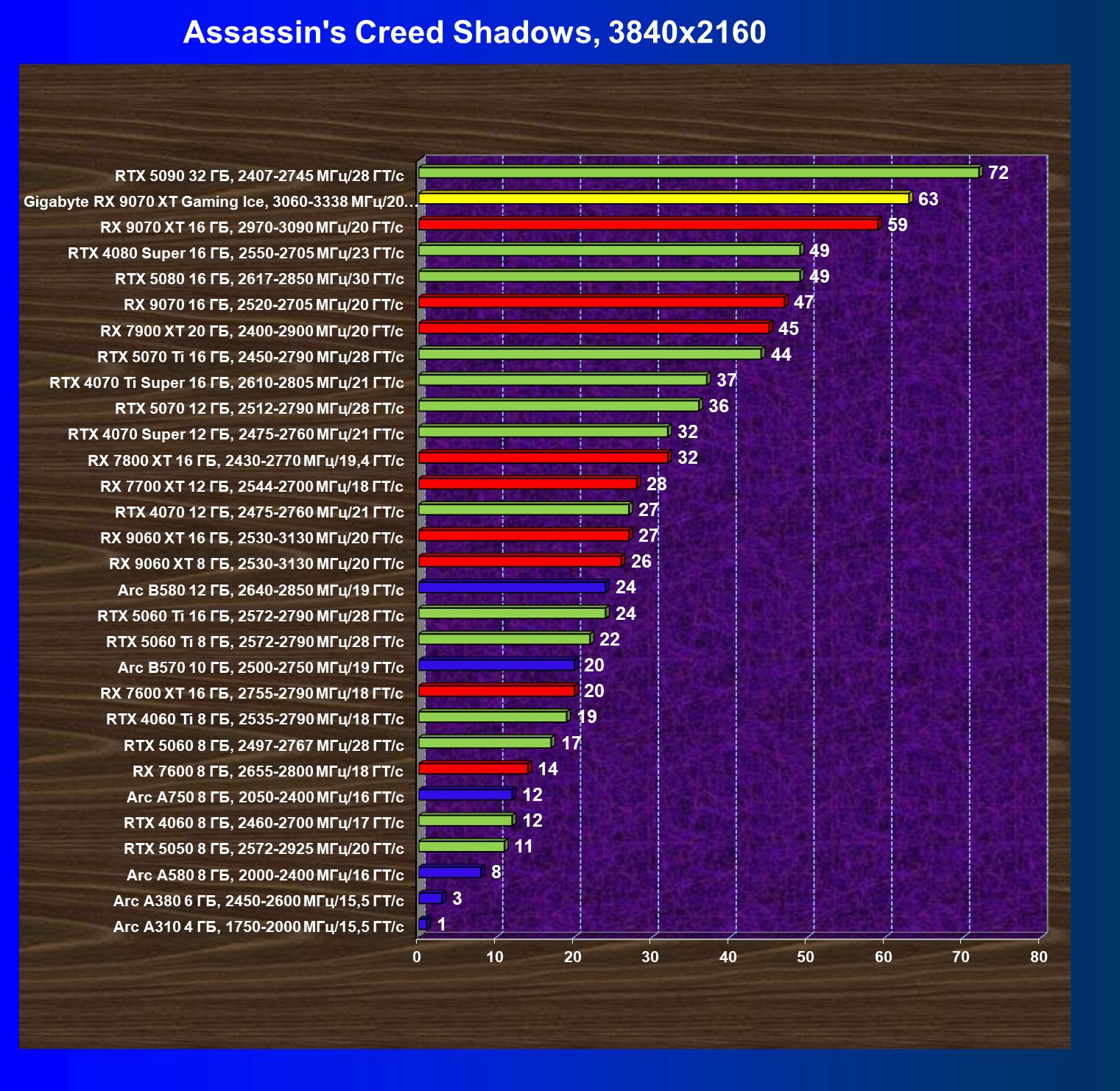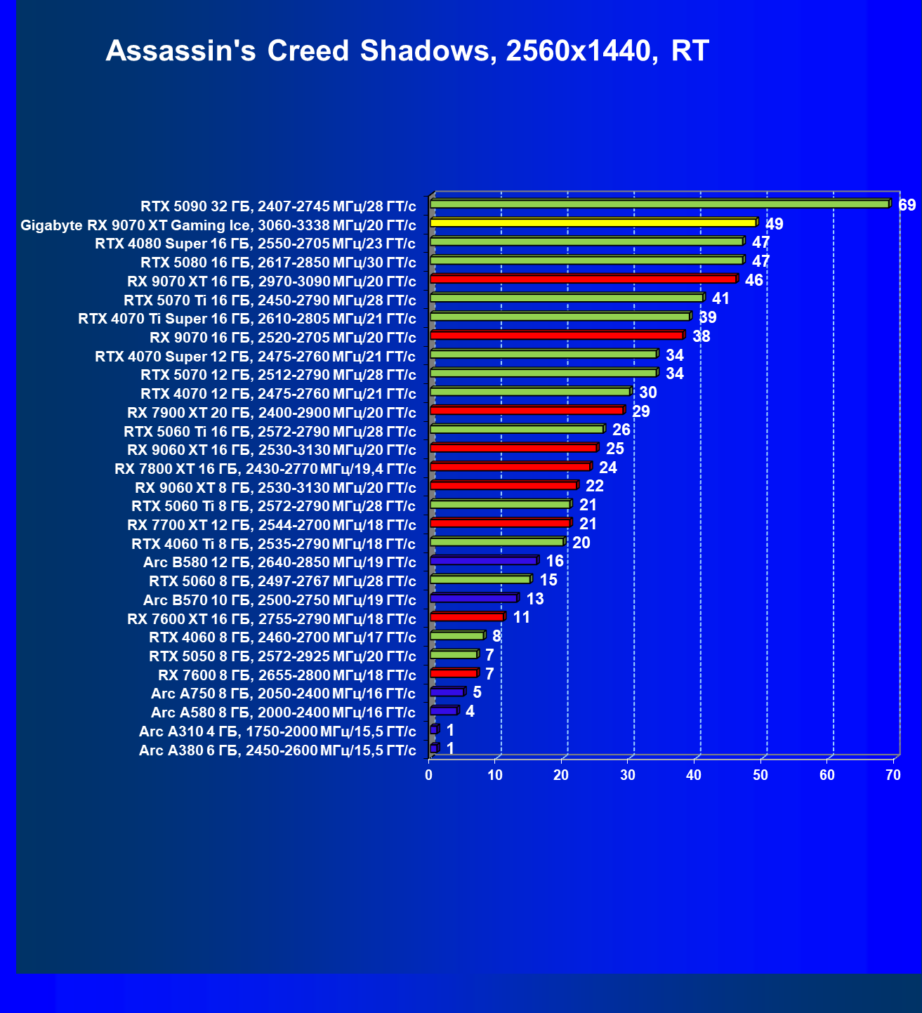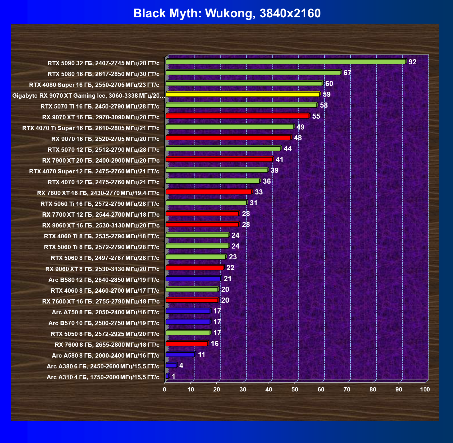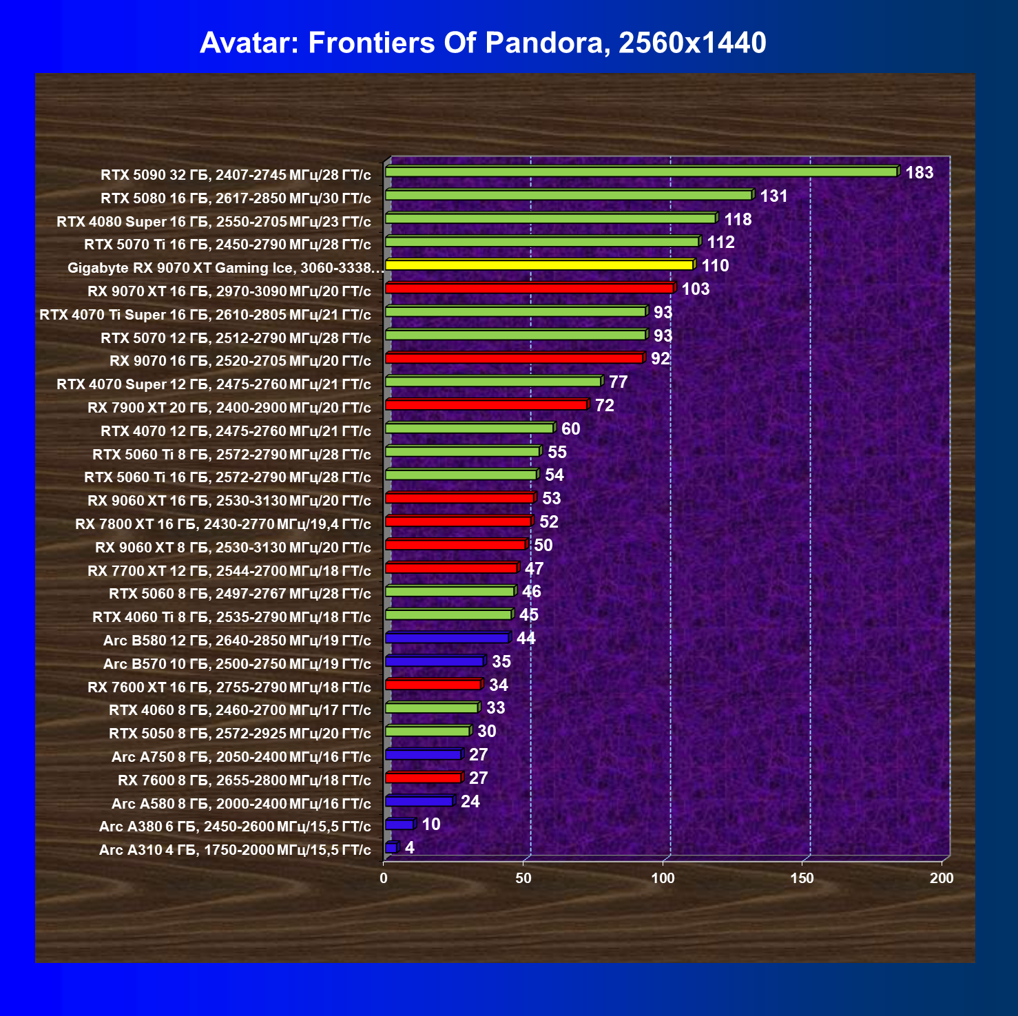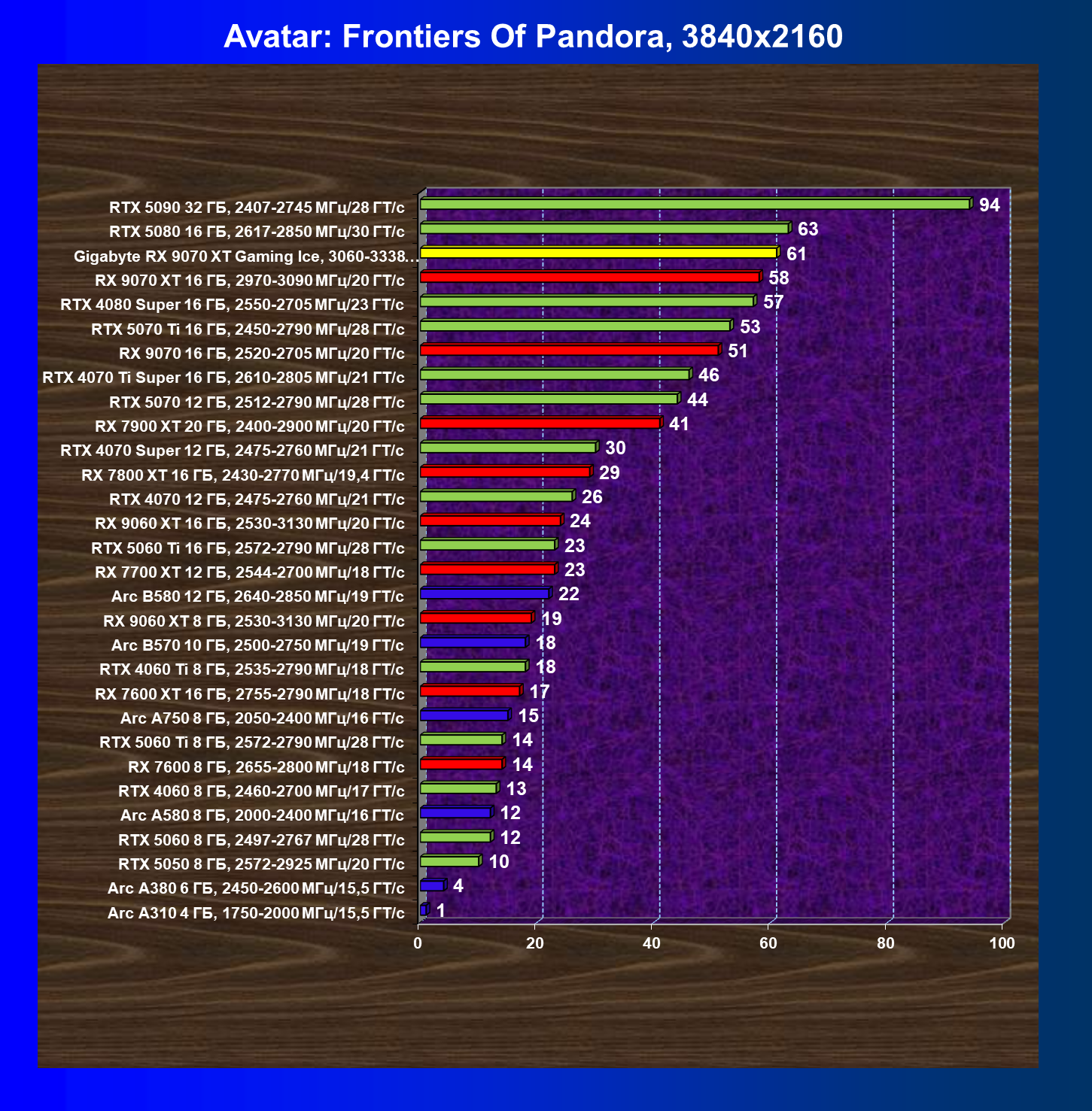 | 08 | Gigabyte RX 9070 XT Gaming Ice, 3060—3338 МГц/20 ГТ/с | 627 | 5333 | 85 000 |