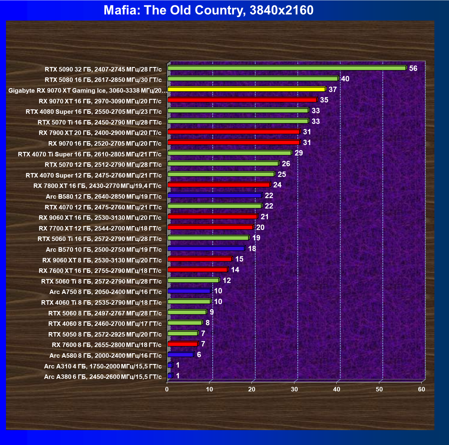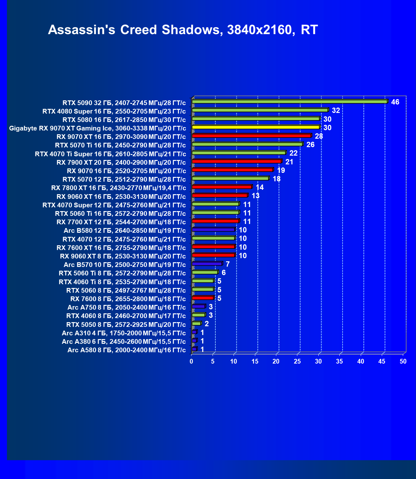 | 07 | RX 9070 XT 16 ГБ, 2970—3090 МГц/20 ГТ/с | 5009 | 603 | 83 000 |