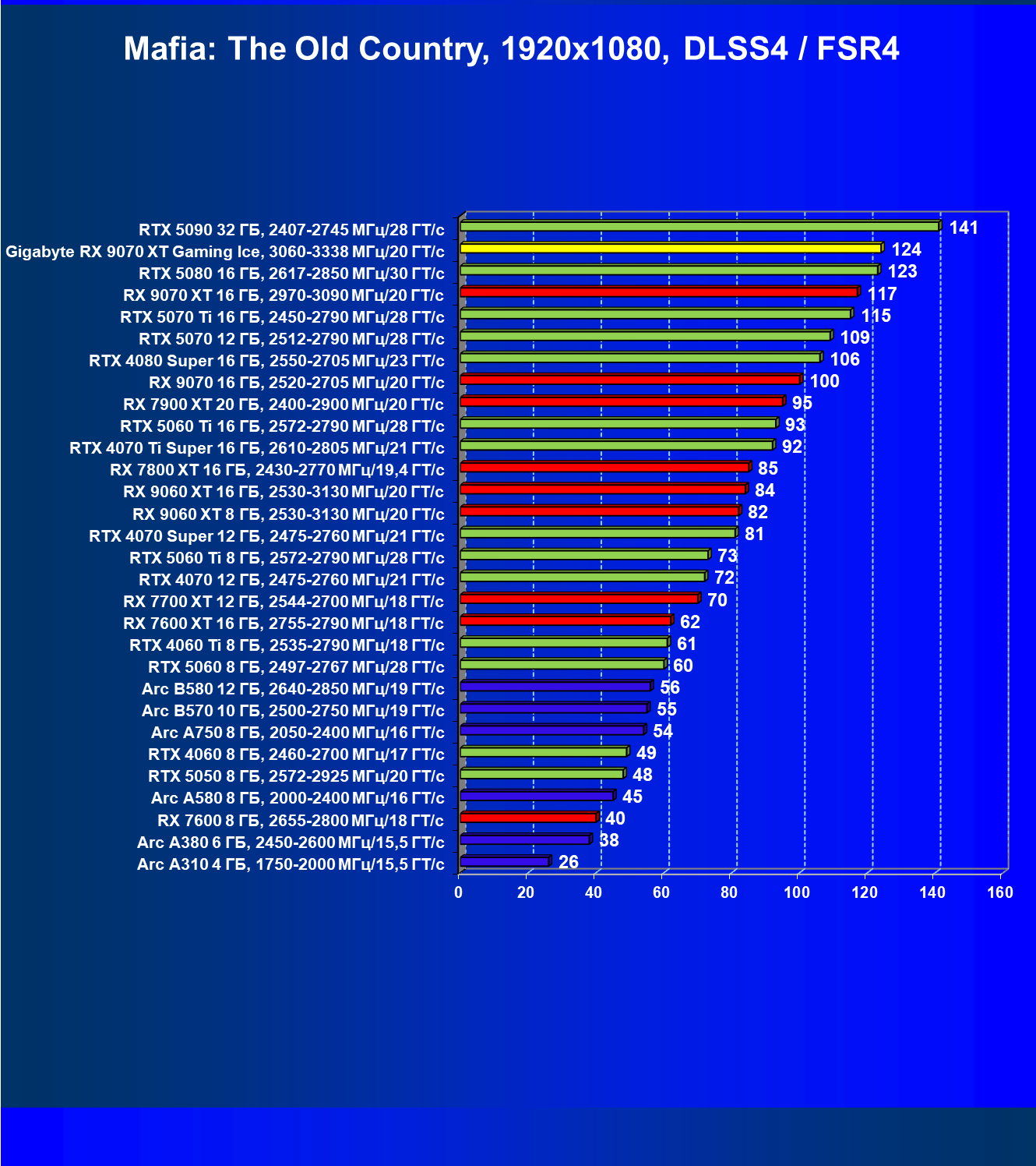 В данном случае как референс-карта Radeon RX 9070 XT, так и карта Gigabyte оказались в лидерах, правда GeForce RTX 5070 Ti идет буквально следом.