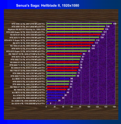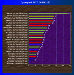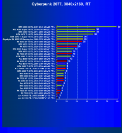 | 28 | RX 7800 XT 16 ГБ, 2430—2770 МГц/19,4 ГТ/с | 212 | 2538 | 120 000 |
