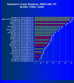 В играх с активной трассировкой лучей и разными видами апскейлинга (FSR/XeSS) Radeon RX 9070 XT находится на одном уровне с GeForce RTX 4070 Ti Super и весьма существенно опережает флагманов предыдущего поколения Radeon RX 7xxx. В разрешениях до 2.5K включительно можно получить хороший комфорт в играх на высоких настройках графики, а во многих играх приемлемая производительность будет и в 4K, однако в некоторых играх использование трассировки лучей надо сочетать с технологиями динамического масштабирования).