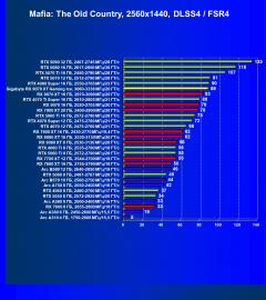 В играх, где задействованы RT и технологии динамического масштабирования, ситуация для Radeon RX 9070 XT выглядит чуть менее позитивно, хотя все равно флагманы предыдущего поколения Radeon RX 7ххх повержены. При этом GeForce RTX 4070 Ti Super уже почти догнал RX 9070 XT, а вот GeForce RTX 5070 Ti — существенно производительнее (даже повышенные частоты работы карты Gigabyte не смогли даже на малость приблизиться к 5070 Ti), ибо здесь сыграло роль активное использование DLSS с многокадровой генерацией в 6 играх из 10, а технология AMD FSR4 (аналог многокадровой генерации) пока еще работает всего в трех из используемых нами игр.