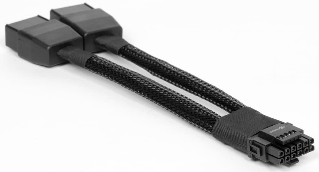 В комплекте также лежит переходник питания с двух 8-контактных разъемов на один 16-контактный. Адаптер крайне не рекомендуется сгибать в месте той самой оплетки!