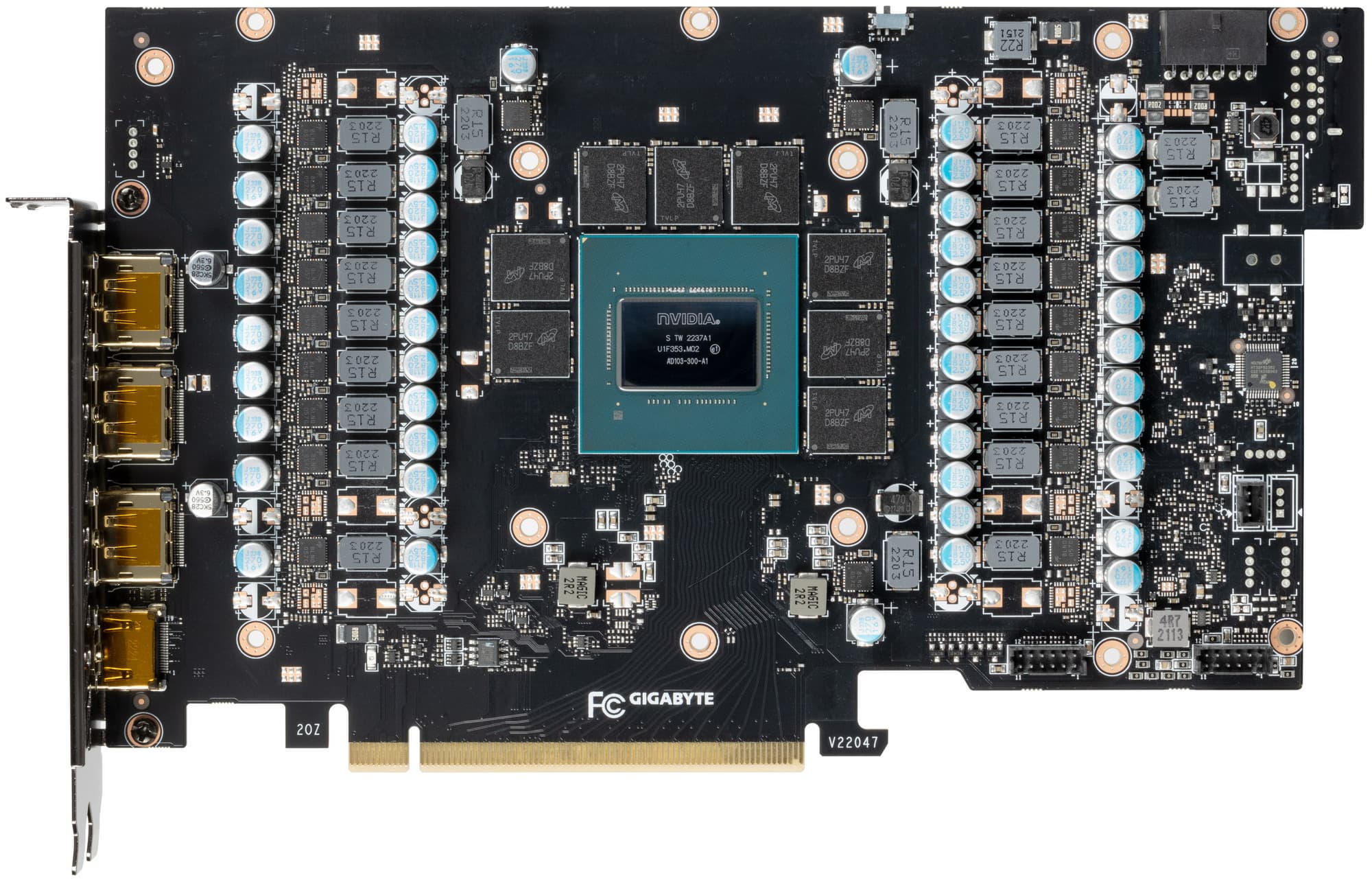Карта имеет стандартный набор видеовыходов: три DP 1.4a и один HDMI 2.1. Производитель гарантирует прочность и качество печатной платы на высоком уровне.