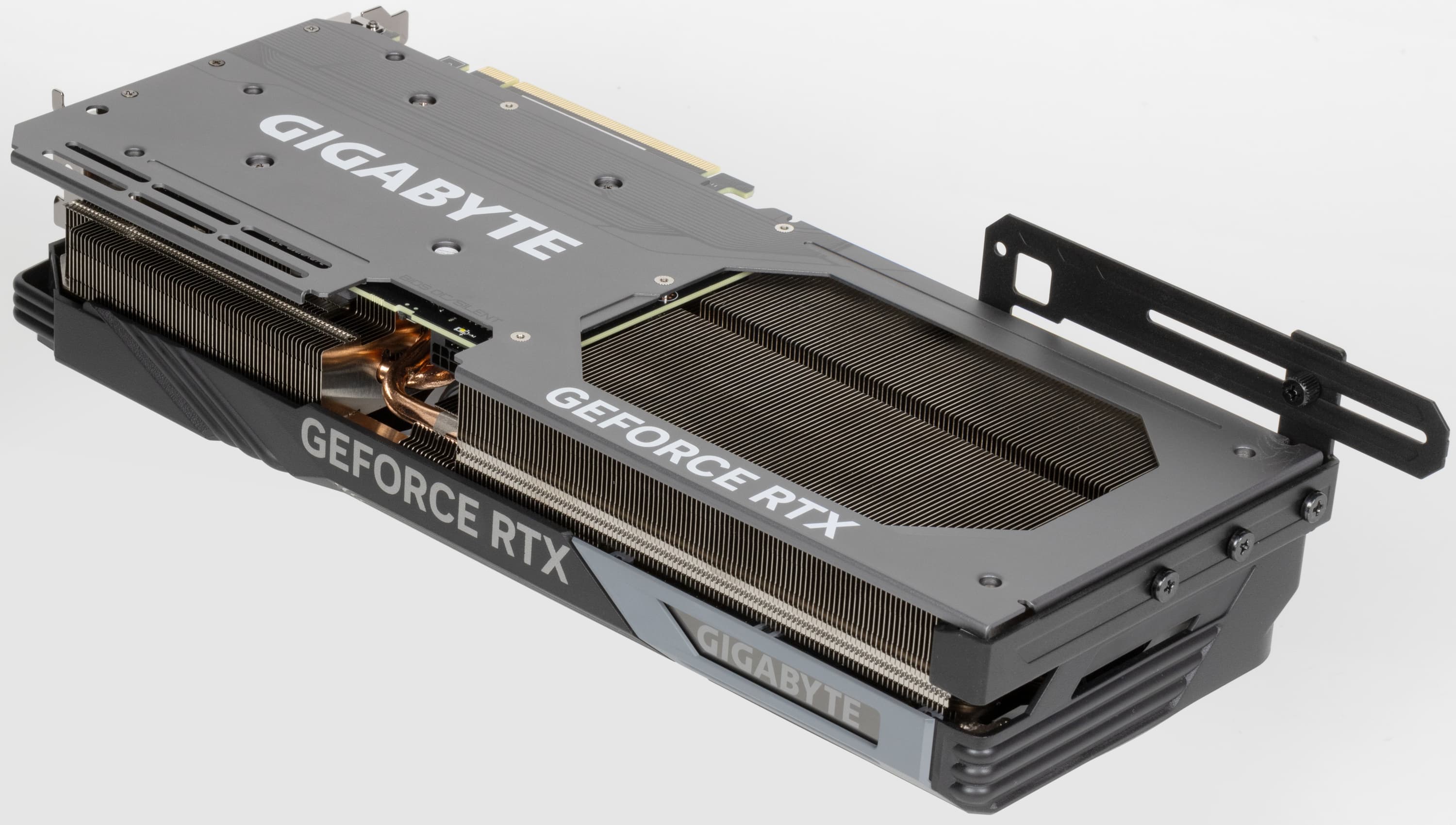 Карта Gigabyte снабжена весьма эффективной системой охлаждения, не слишком шумной в режиме BIOS Silent.