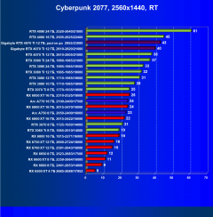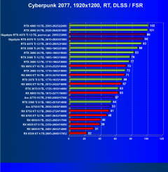 Результаты тестов со включенной аппаратной трассировкой лучей и/или DLSS/FSR в разрешениях 1920×1200, 2560×1440 и 3840×2160