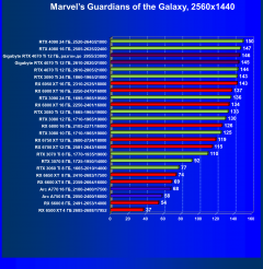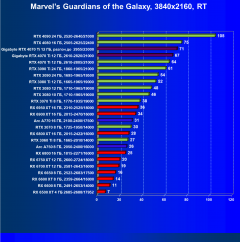 | 20 | RX 6950 XT 16 ГБ, 2310—2525/18000 | 54 | 450 | 83 100 |