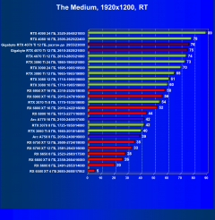 | 09 | RX 6950 XT 16 ГБ, 2310—2525/18000 | 652 | 78 | 83 100 |