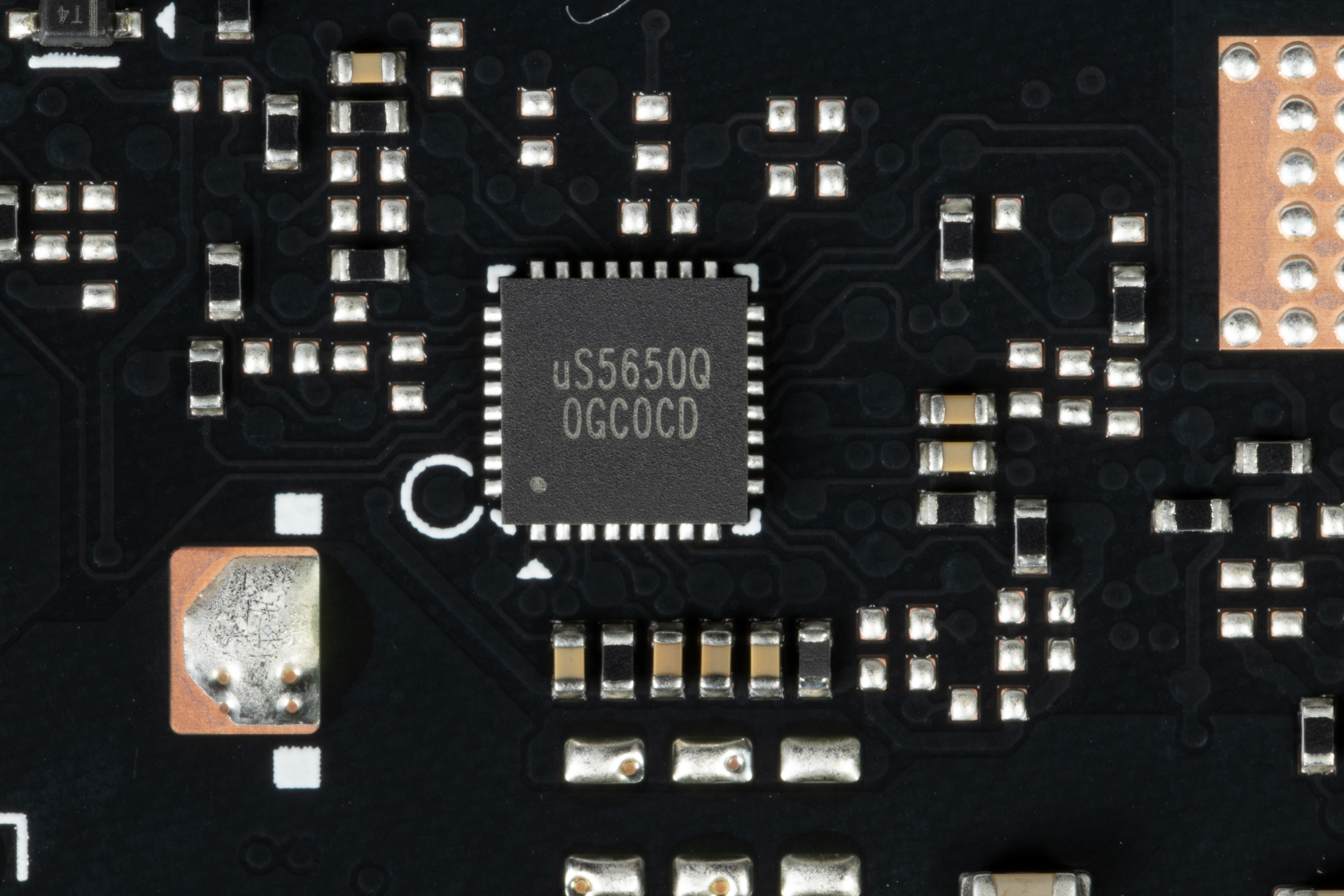 На тыльной стороне платы имеется контроллер uS5650Q (uSI Semiconductor), который отвечает за мониторинг карты (отслеживание напряжений и температуры).