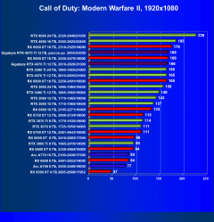 | 22 | RTX 4080 16 ГБ, 2505—2625/22400 | 51 | 502 | 98 000 |