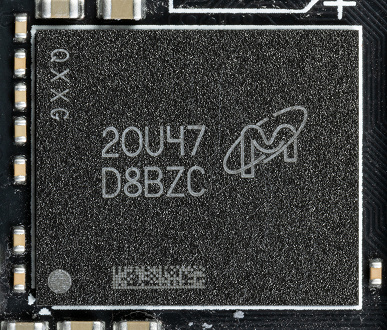 Питанием микросхем памяти управляет о ШИМ-контроллер uP9529Q (uPI Semiconductor), также расположенный на оборотной стороне PCB.