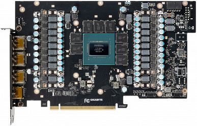 Питание на карту Gigabyte подается через новый 16-контактный разъем питания стандарта PCIe 5.0.
