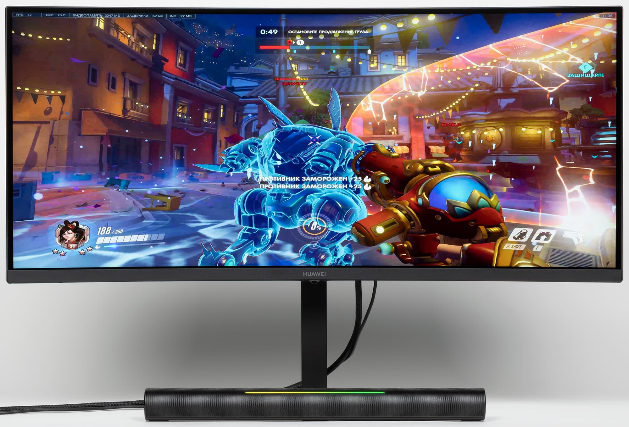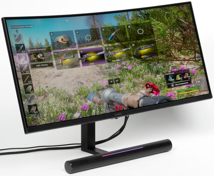 Huawei MateView GT — это игровой монитор высокого класса. К его особенностям относятся большой изогнутый с радиусом 1,5 м сверхширокоформатный экран высокого разрешения, встроенный в подставку саундбар и строгий аккуратный дизайн. Есть поддержка частоты обновления до 165 Гц включительно, а также хорошая реализация HDR. Впрочем, несмотря на явную ориентацию на геймеров, монитор получился универсальным, пригодным, например, для комфортного выполнения офисной работы, для работы в системах CAD/CAM и для просмотра кино. Отметим, что неширокие углы обзора как по снижению яркости, так и по изменению цветов частично компенсируются тем, что экран изогнутый.