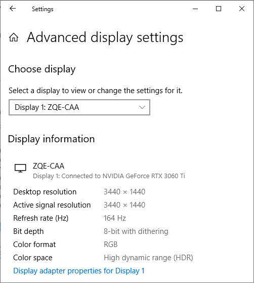 Только при подключении к компьютеру по DisplayPort (и, видимо, USB-C) поддерживается разрешение до 3440×1440 при 165 Гц кадровой частоты в режиме 8 бит на цвет на вход и без потери цветовой четкости. Снижение частоты до 144 Гц позволяет увеличить разрядность до 10 бит на цвет. При подключении по HDMI в разрешении 3440×1440 можно получить максимум 100 Гц кадровой частоты при 8 бит на цвет.
