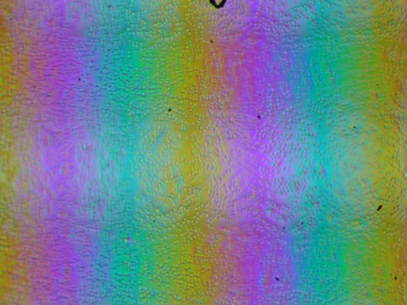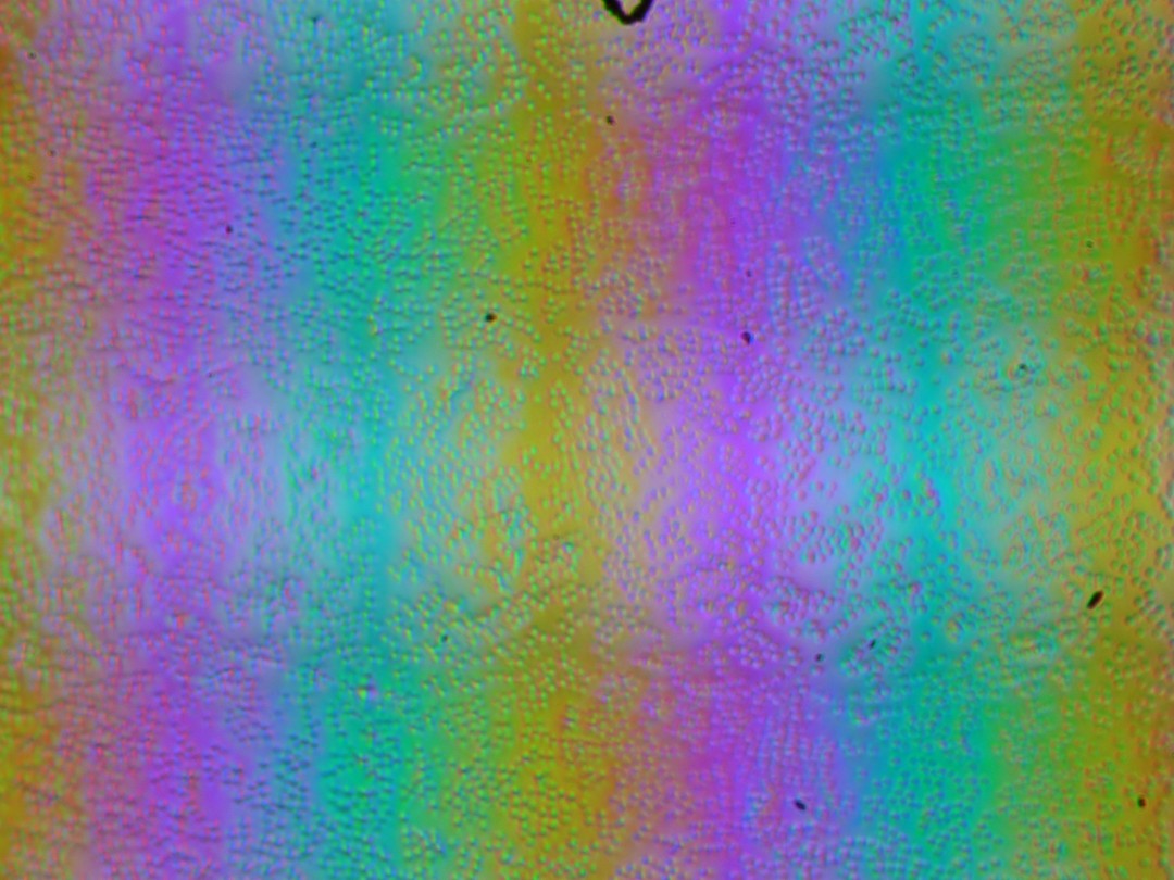 Зерно этих дефектов в несколько раз меньше размеров субпикселей, поэтому фокусировка на микродефектах и «перескок» фокуса по субпикселям при изменении угла зрения выражены слабо, из-за этого нет и «кристаллического» эффекта.