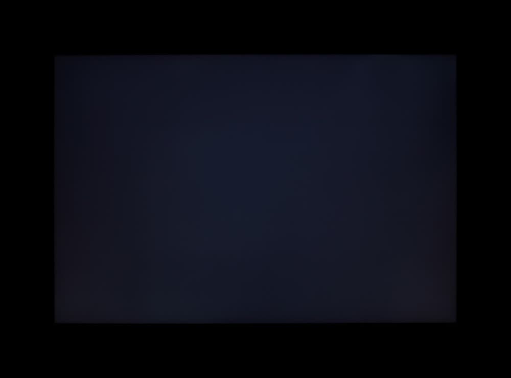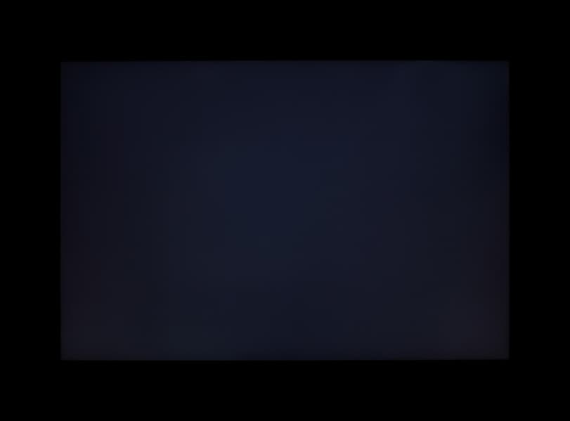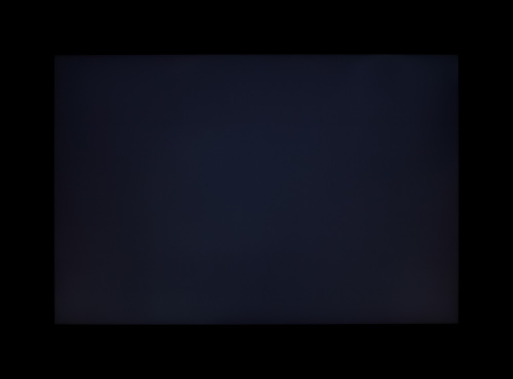 Контрастность для данного типа матриц по современным меркам хорошая. Если отступить от краев, то равномерность всех трех параметров приемлемая. Фотография ниже дает представление о распределении яркости черного поля по площади экрана:
