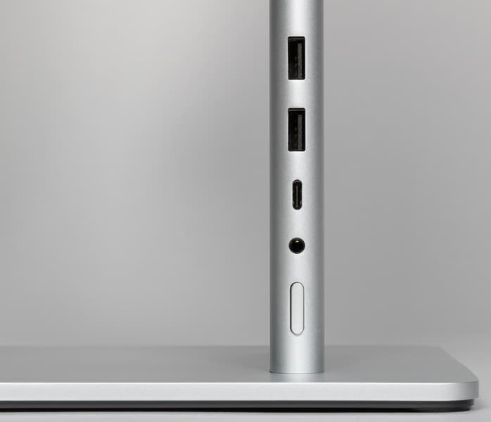 Интегрированный в монитор двухпортовый USB-концентратор доступен только через подключение к порту USB типа C, в том числе и в случае ввода видеосигнала через этот интерфейс. Через это же подключение доступны подключенные к монитору по Bluetooth устройства ввода, например, мышь и клавиатура, а также микрофон, встроенный двойной или подключенный через миниджек 3,5 мм. Порт USB типа C поддерживает подачу питания на подключенный к нему ноутбук с заявленной мощностью до 65 Вт. При подключении ноутбука с разряженной батареей и с запущенным на нем нагрузочном тесте потребление монитора от розетки возросло почти на 73 Вт, так что заявленные 65 Вт вполне реальны.