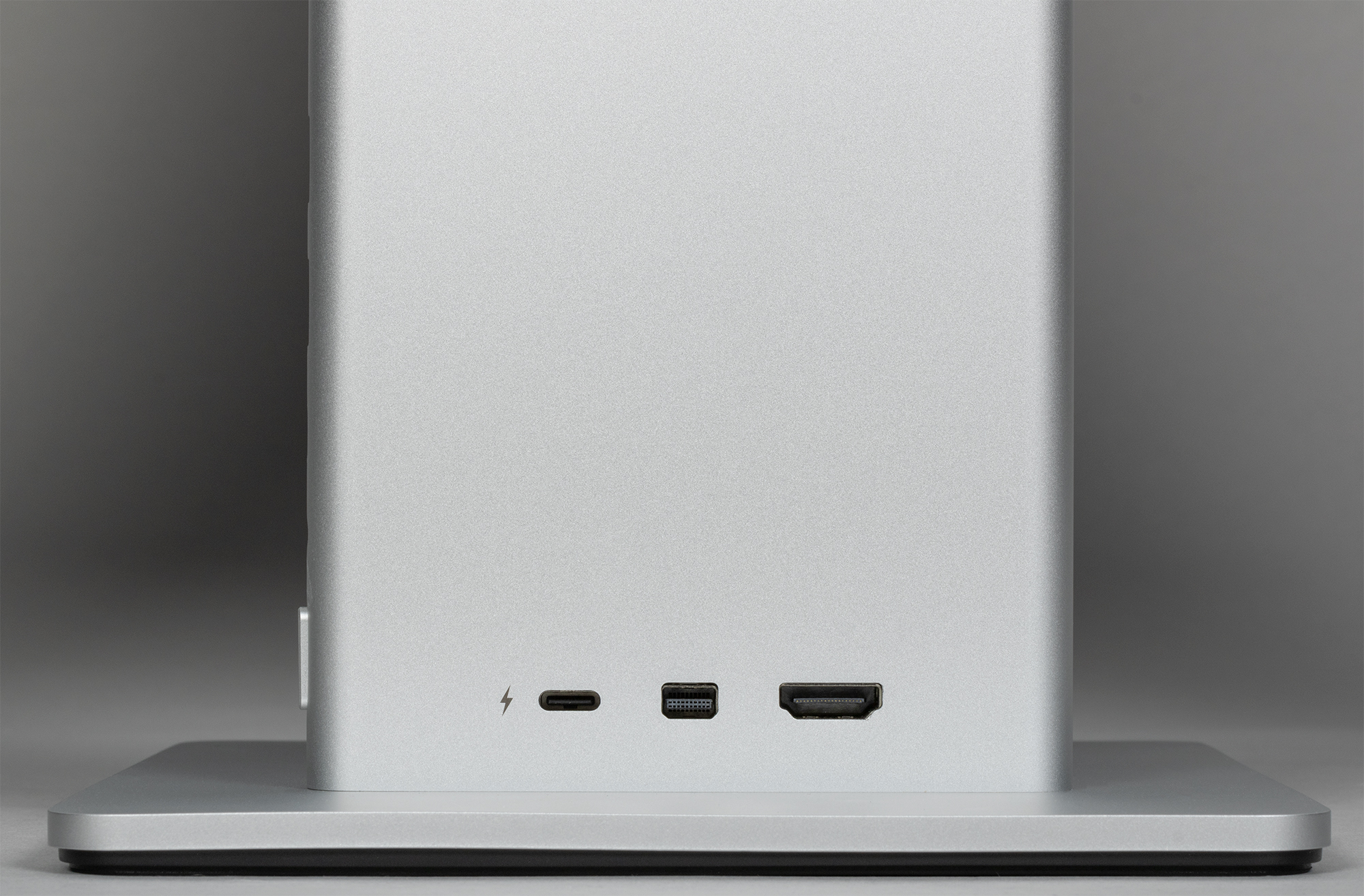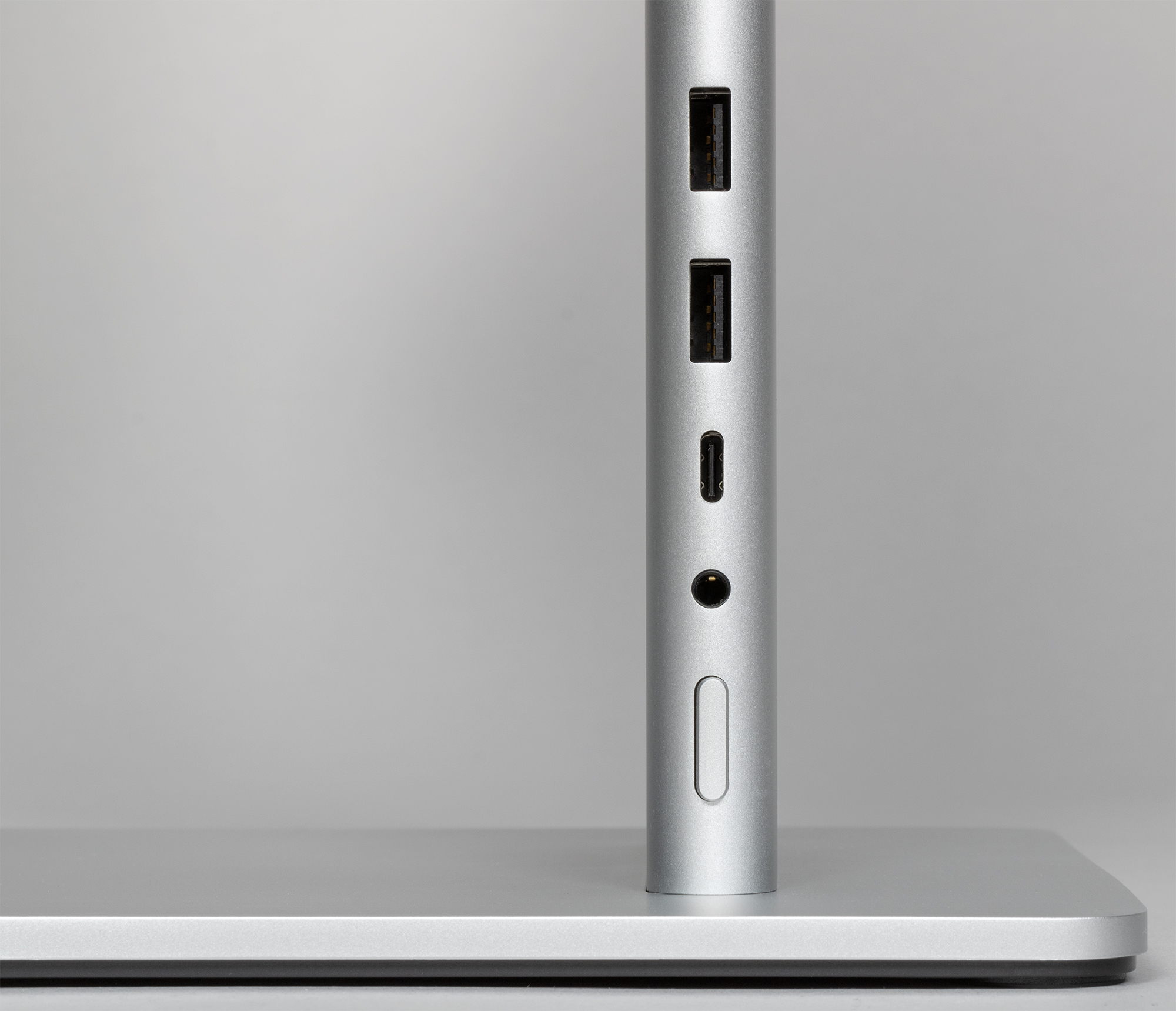 Разъемы питания расположены на стойке подставки. Часть — сзади горизонтально в ряд, а часть — на правом торце вертикально в ряд. Разъем питания отмечен значком молнии. Других обозначений разъемов нет. Подключать кабели к разъемам удобно, хотя входят они туговато.