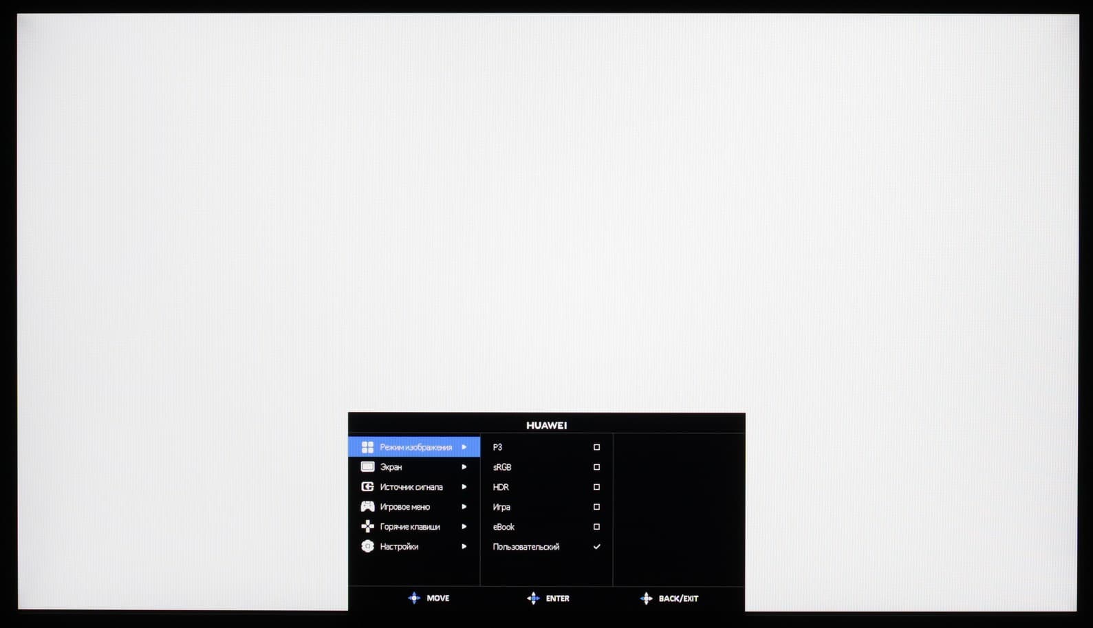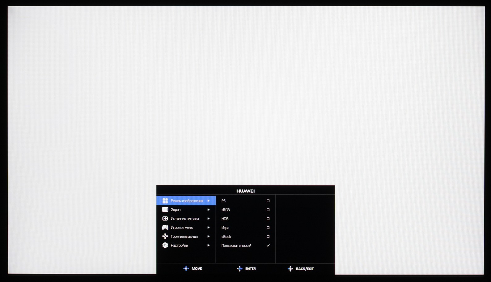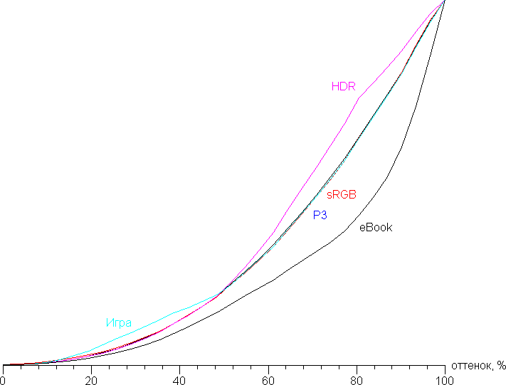 Особенными профилями являются Игра, в котором яркость темных (но не самых темных) оттенков повышена, HDR — повышена яркость светлых оттенков, eBook — общая яркость изображения понижена.