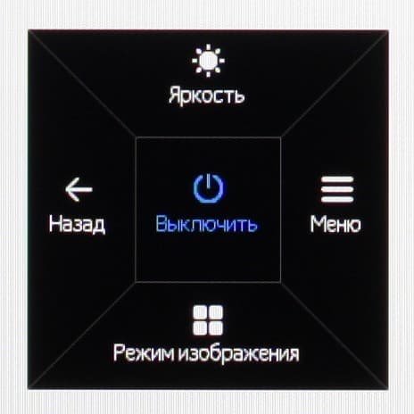 Индикатор питания при работе неярко светится белым, в режиме ожидания — медленно мигает белым (это можно отключить) и не горит, если монитор условно (механического выключателя питания, к сожалению, нет) выключен.