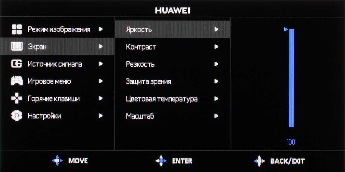 Настроек, влияющих на яркостный и цветовой баланс, не очень много. Есть регулировки яркости (подсветки) контрастности, краевой четкости (Резкость) и функция снижения интенсивности синей компоненты.