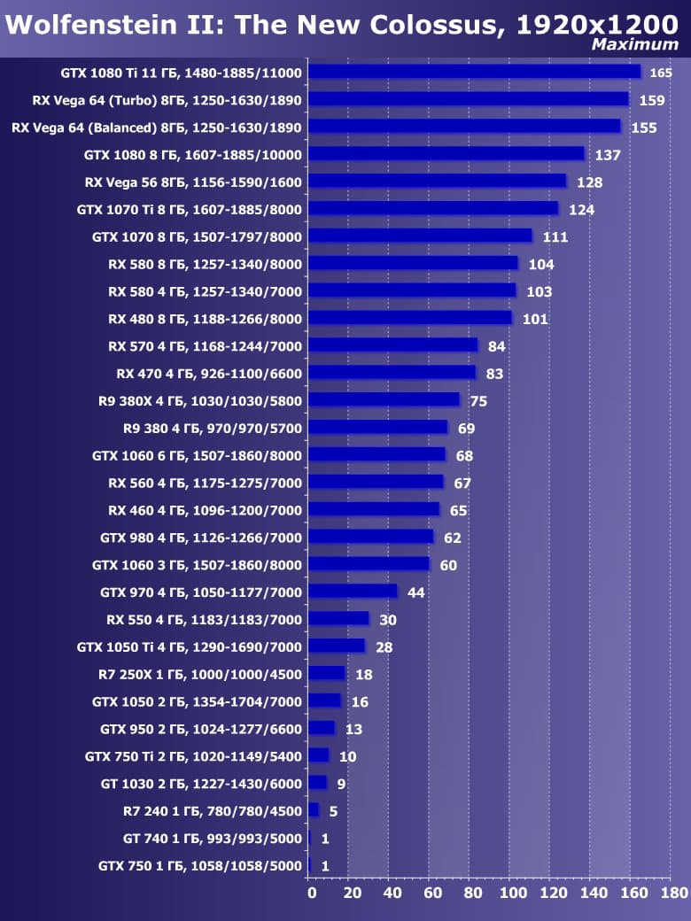 Добавлены результаты тестирования в играх Wolfenstein II: The New Colossus, Assassin’s Creed: Origins, Total War: Warhammer II. Результаты тестирования в играх Fallout 4, The Witcher 3: Wild Hunt, Hitman (2016) отправлены в архив. Версии драйверов, с которыми тестировались все видеокарты: AMD Adrenalin Edition 17.12.2 и Nvidia 388.71.