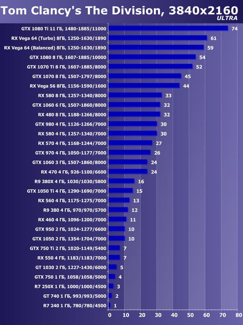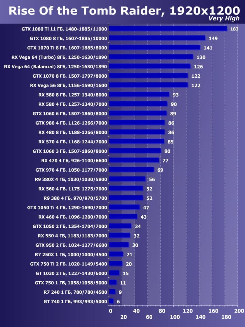 | 15 | GTX 1060 3 ГБ, 1507—1860/8000 | 1230 | 665 | 18 500 |